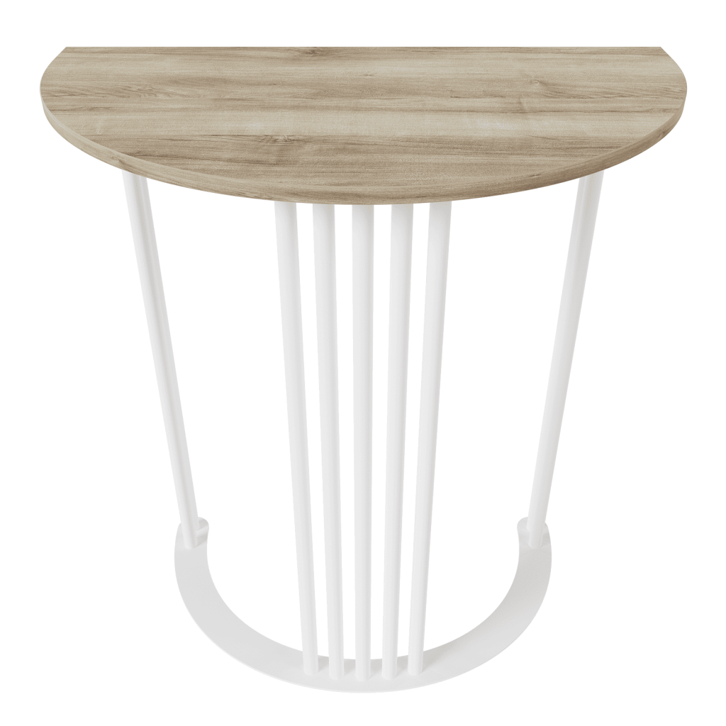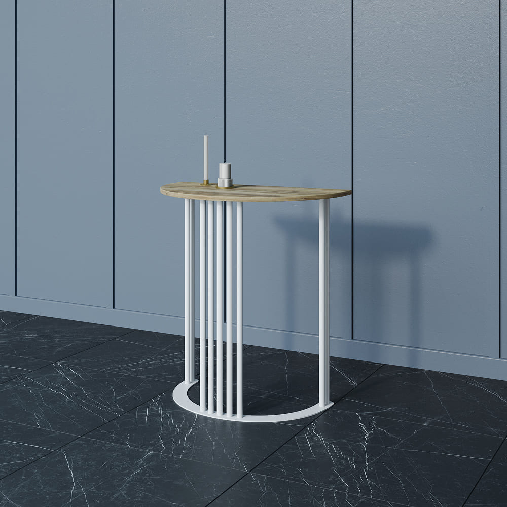 Консоль VIOLUR в форме полукруга привлекает внимание лаконичным дизайном и функциональностью. Металлическое основание дополняет столешница из ЛДСП, толщиной 1.6 см. Данная модель идеально впишется в интерьер и осовременит стильный дизайн, создаст атмосферу уюта и комфорта. Консоли из металла популярны у дизайнеров для создания интерьеров в стиле лофт, минимализм, хай-тек.