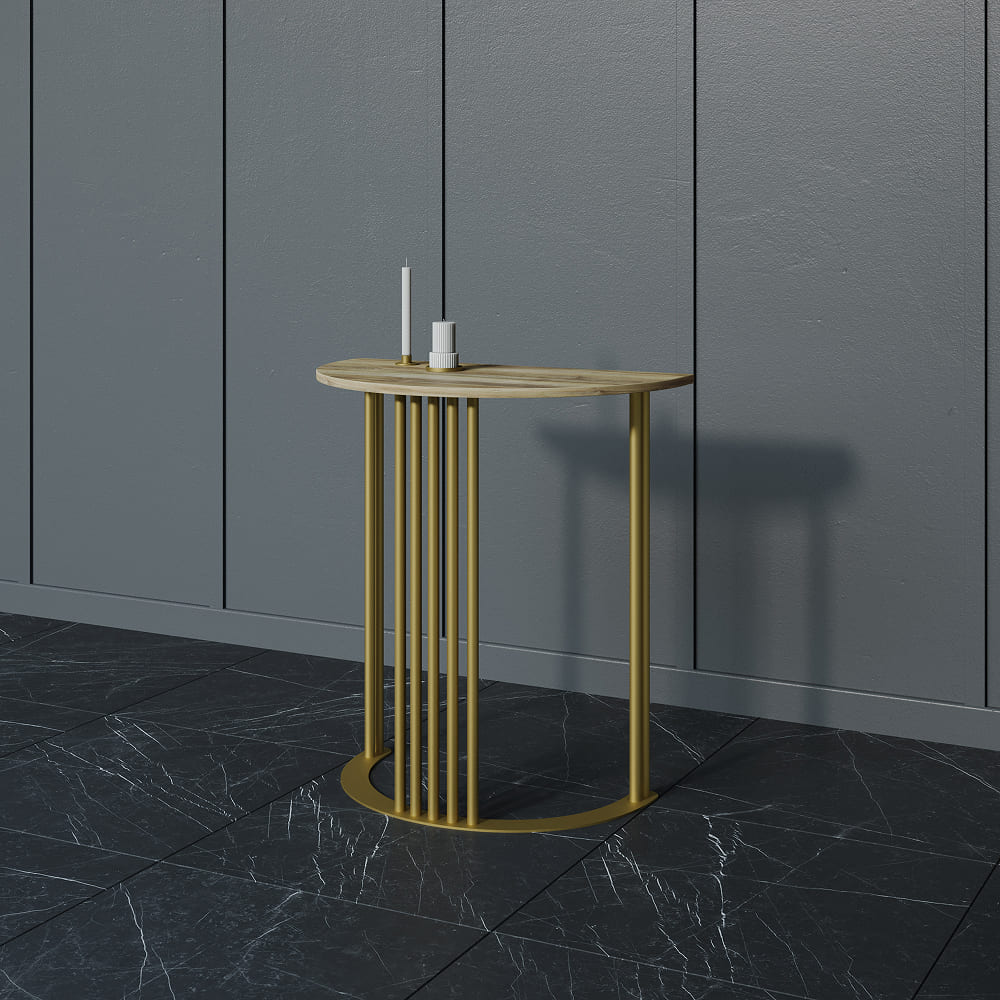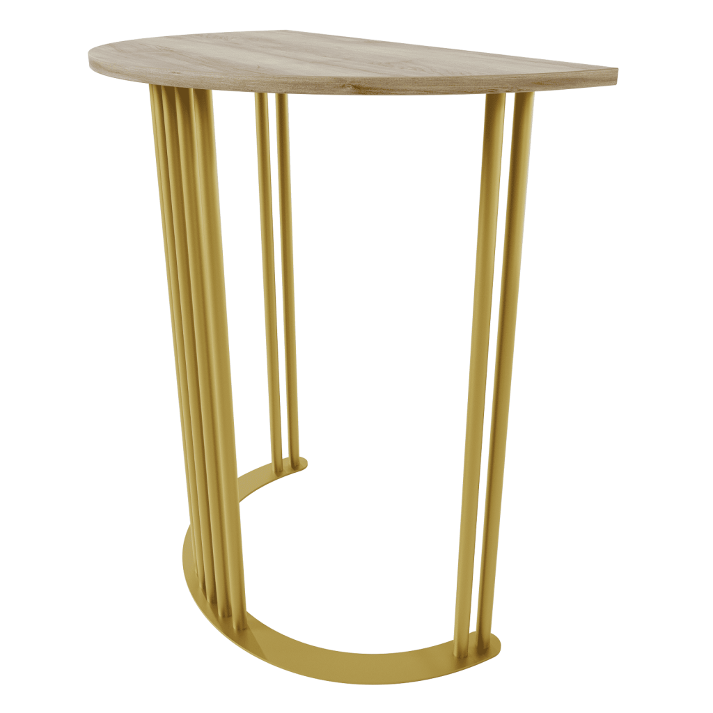 Консоль VIOLUR в форме полукруга привлекает внимание лаконичным дизайном и функциональностью. Консоли из металла популярны у дизайнеров для создания интерьеров в стиле лофт, минимализм, хай-тек.