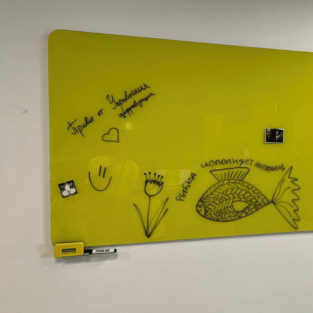Стекло-маркерные доски GENGLASS изготавливаются в основном на заказ, так как мы предлагаем расширенный размерный ряд и уникальные цветовые решения.