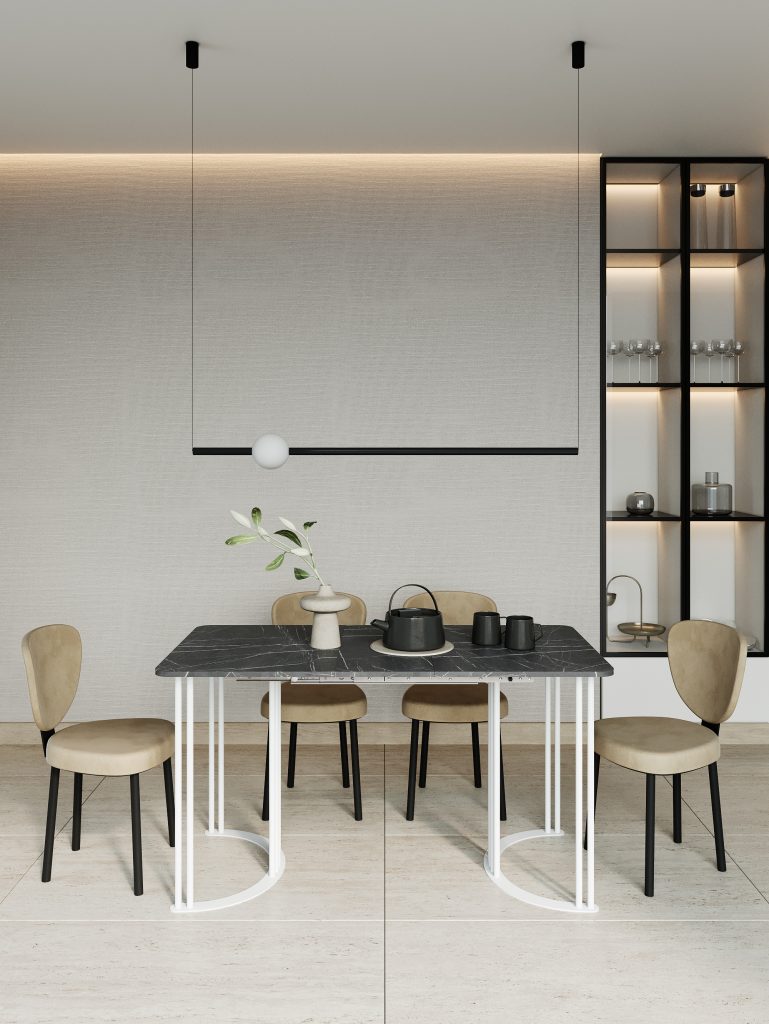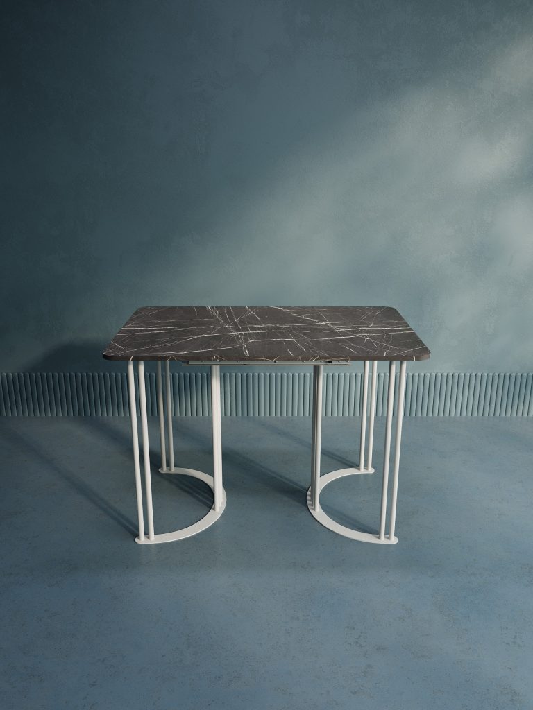 Обеденный раздвижной стол VIOLUR 110/140 х 70 см, темный мрамор/белый