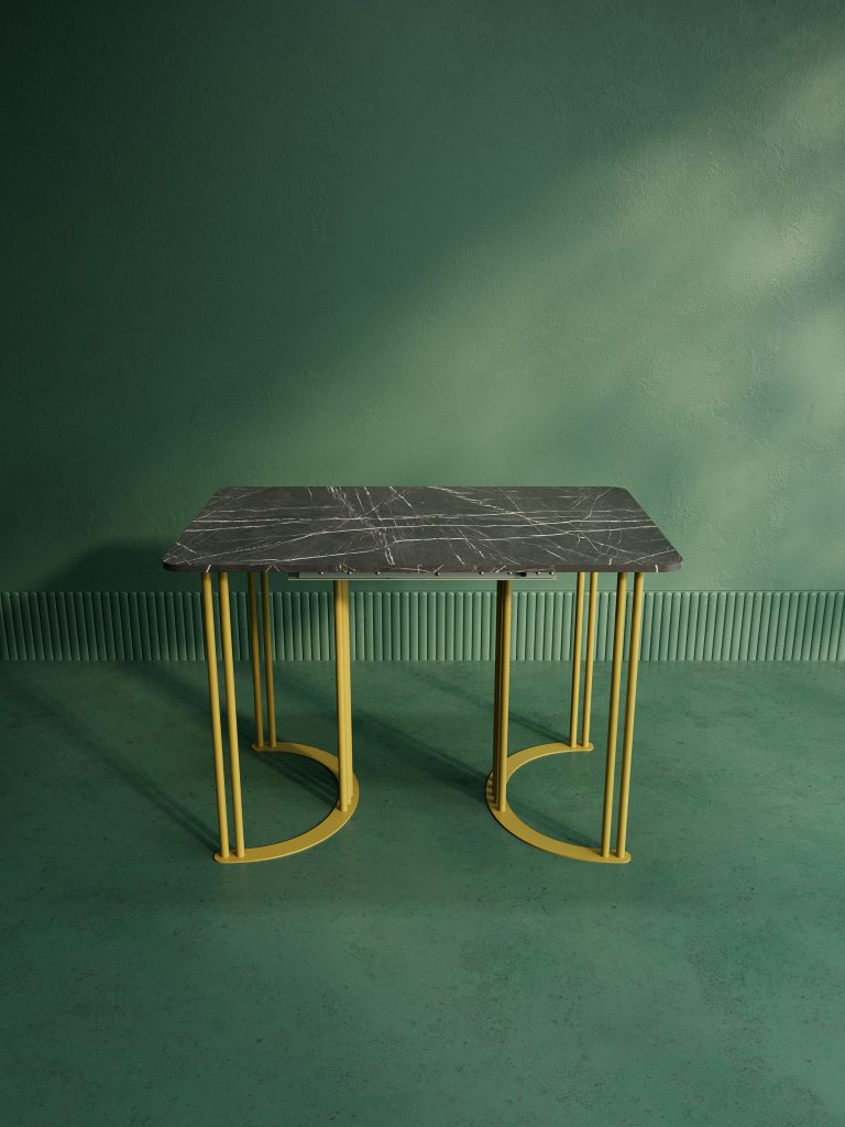 Обеденный раздвижной стол VIOLUR 110/140 х 70 см, темный мрамор/золотой