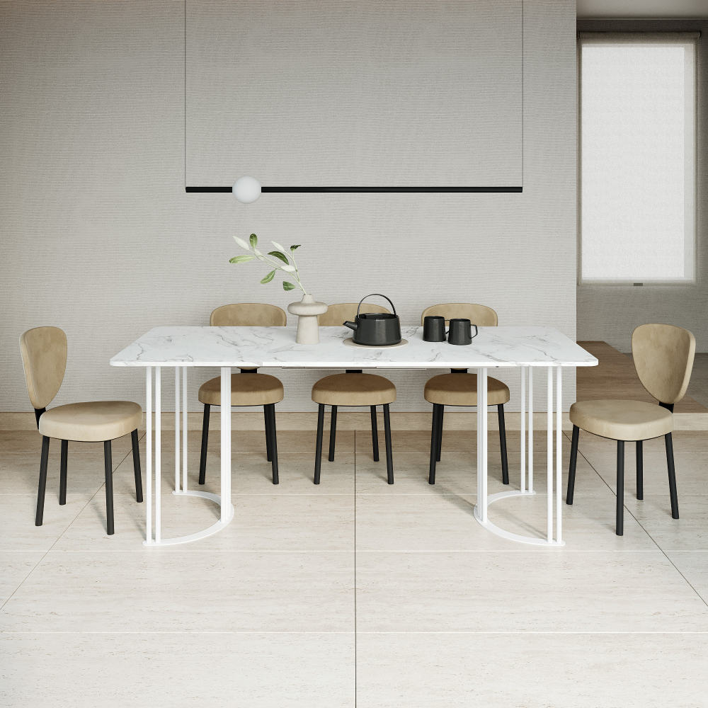 Обеденный раздвижной стол VIOLUR 120/190 х 80 см, белый мрамор/белый