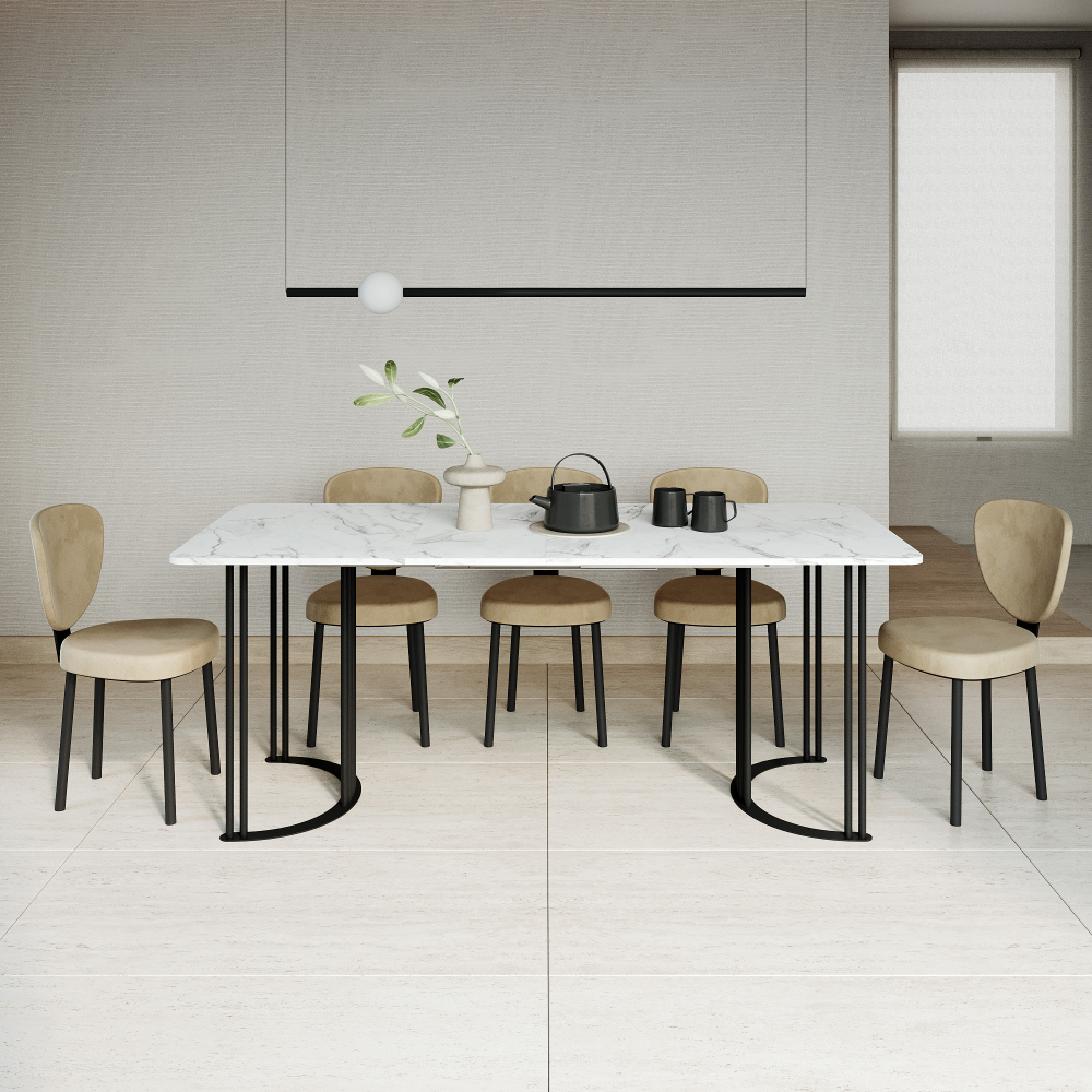 Обеденный раздвижной стол VIOLUR 120/190 х 80 см, белый мрамор/черный