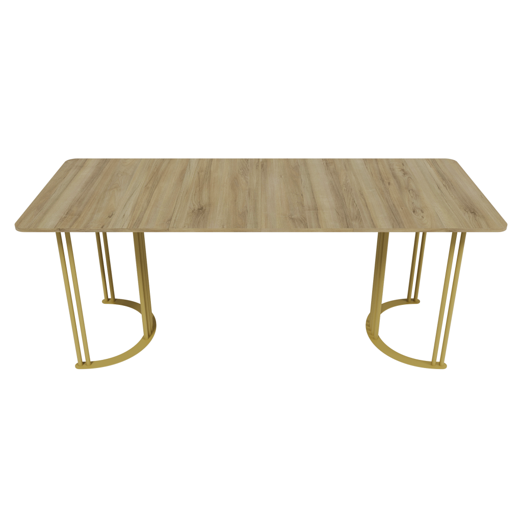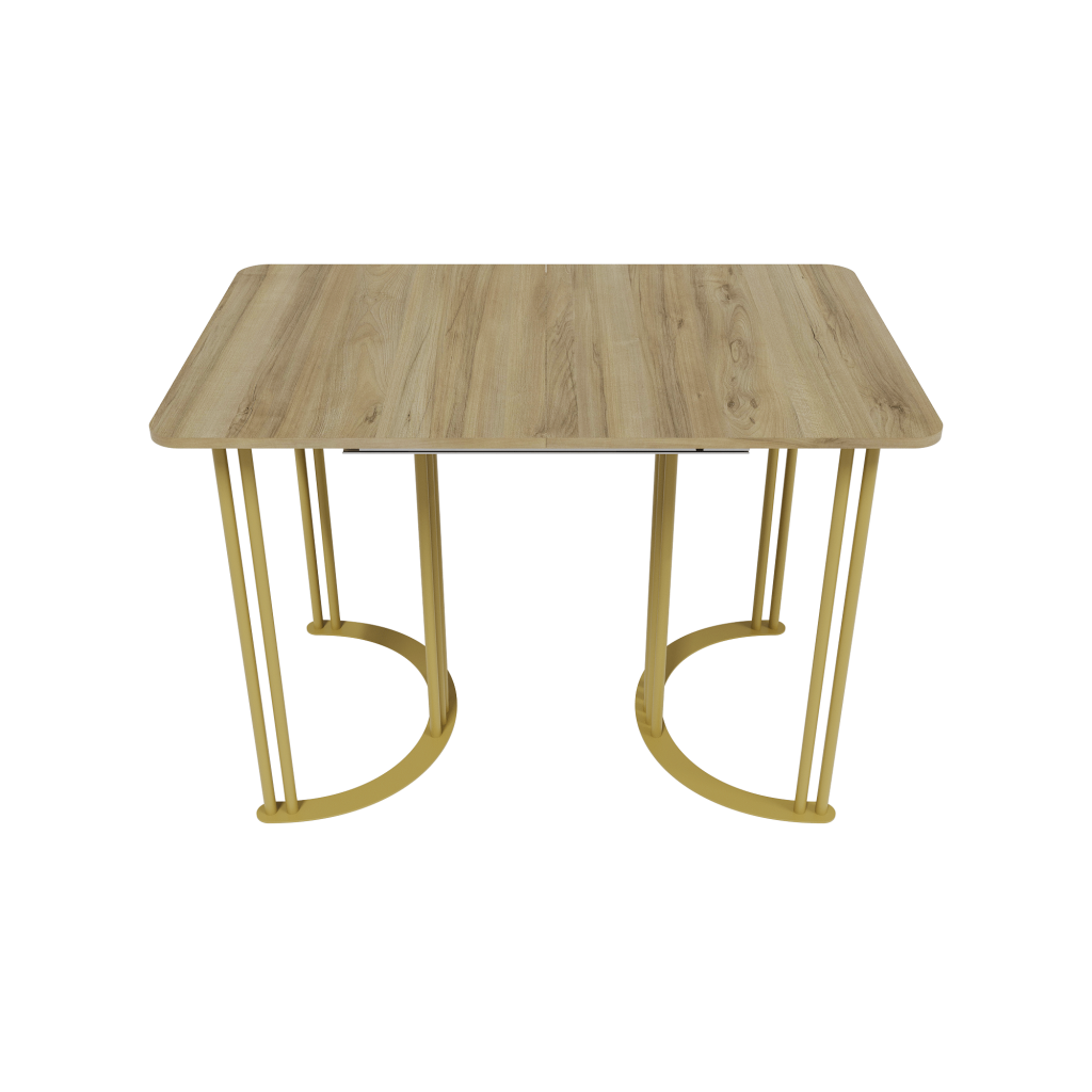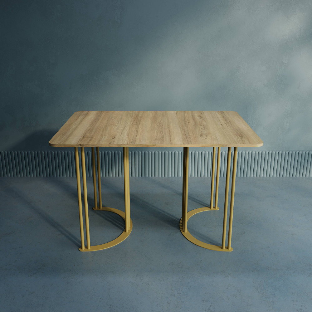 Поддерживает эту стильную столешницу прочное и устойчивое металлическое подстолье, состоящее из двух элегантных ножек в форме полумесяца с матовой порошковой окраской, доступной в трёх классических цветах: золотом, чёрном и белом.