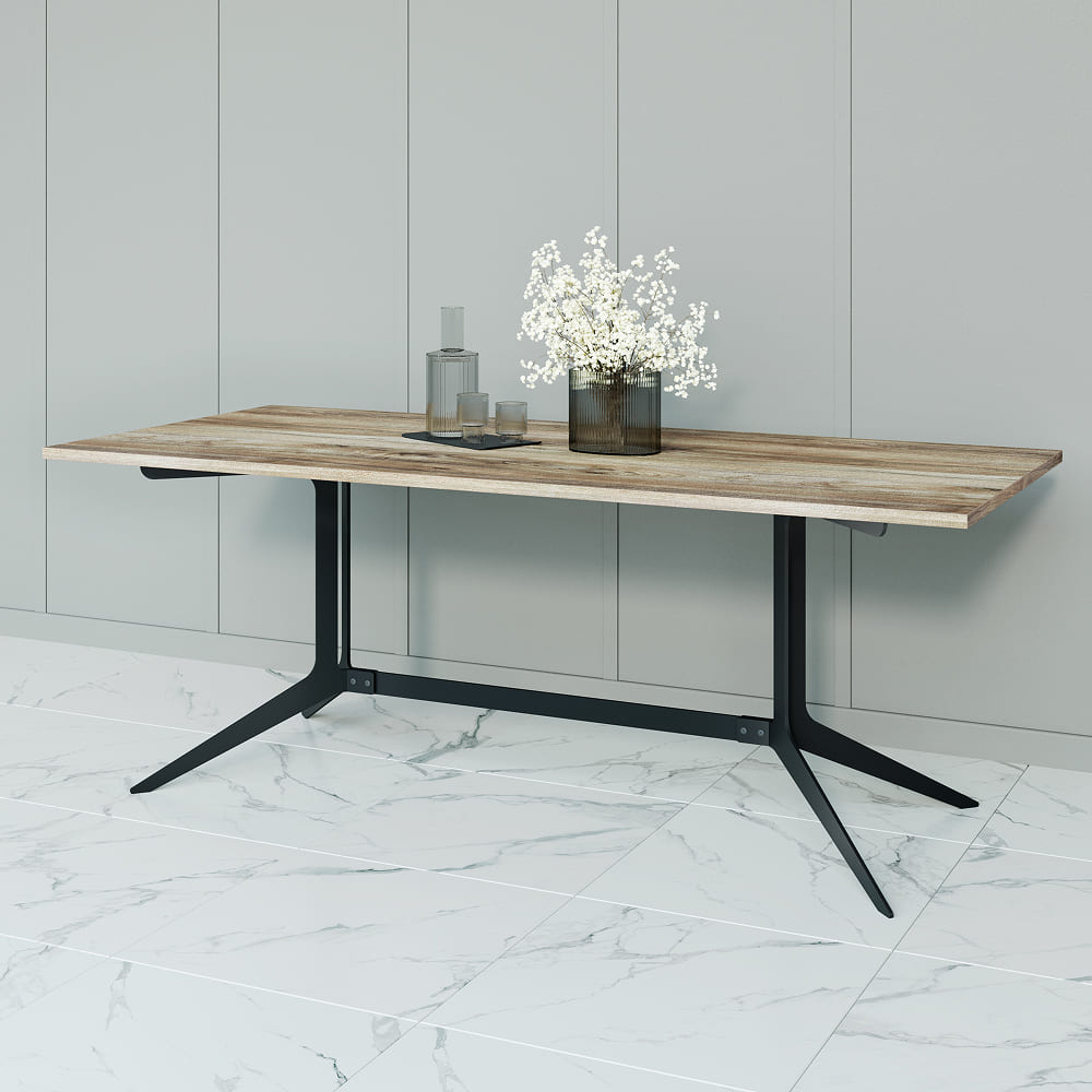 Прямоугольный кухонный стол, состоящий из столешницы и чёрного разборного металлического подстолья не только прекрасно впишется в интерьер вашего дома, но и станет незаменимым элементом вашего обеденного пространства. Он прекрасно сочетается со стилем LOFT и однозначно будет притягивать взгляды окружающих. Обеденный прямоугольный стол придаёт кухне стильный и современный вид. Создает гармоничное пространство, располагая к уютным беседам и веселым застольям.