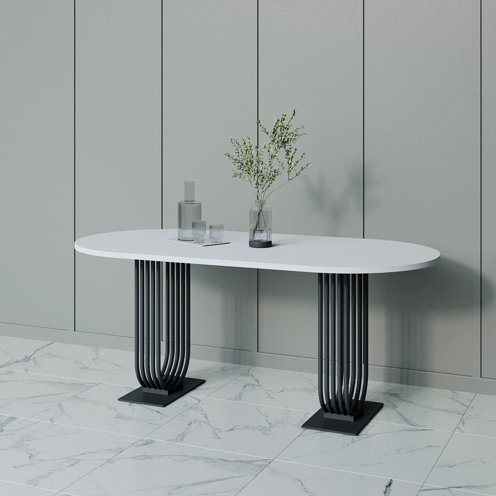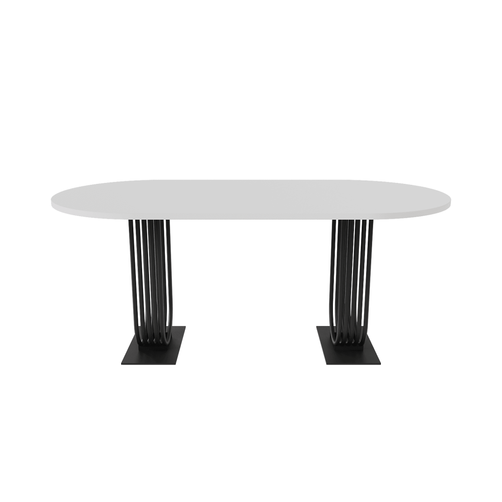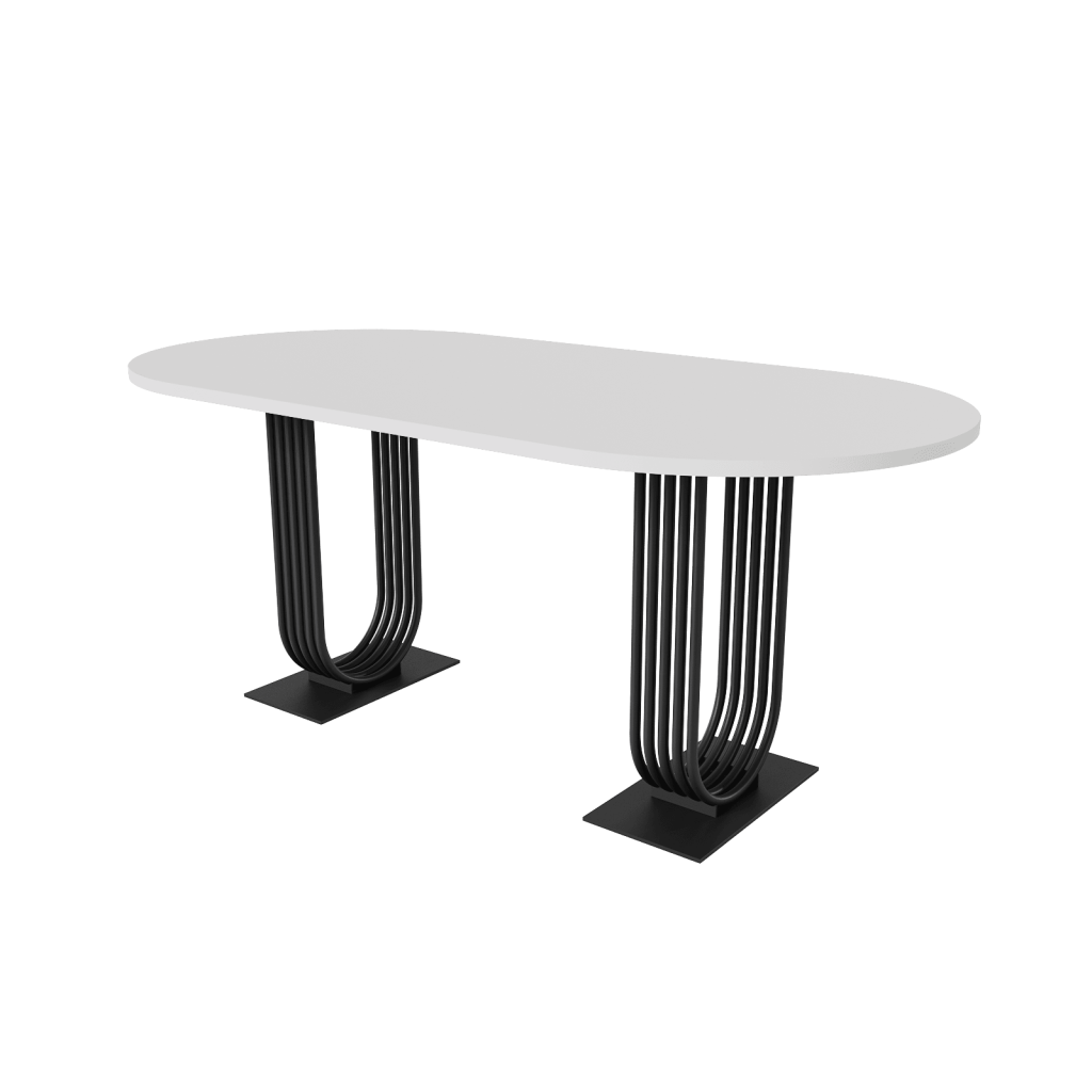 Лаконичный внешний вид овального стола серии ARFEO Duo, основанный на строгих прямых линиях, обеспечивает универсальность, позволяя органично вписаться в любой интерьер – от уютной домашней кухни до современного офисного пространства. Столешница, изготовленная из высококачественного ЛДСП толщиной 2.5 см, отличается не только прочностью и долговечностью, но и приятной на ощупь текстурой. Основа стола – прочный металлический каркас, выполненный из трубы диаметром 2 см. Такая конструкция гарантирует не только впечатляющую несущую способность, позволяющую комфортно разместить за столом от 4 до 6 человек, но и неповторимый индустриальный шарм. Обработка металла – это высококачественная матовая порошковая покраска, доступная в трех классических цветах: золотом, черном и белом. Порошковое покрытие не только обеспечивает привлекательный внешний вид, но и защищает металл от коррозии и механических повреждений, гарантируя долгий срок службы изделия.