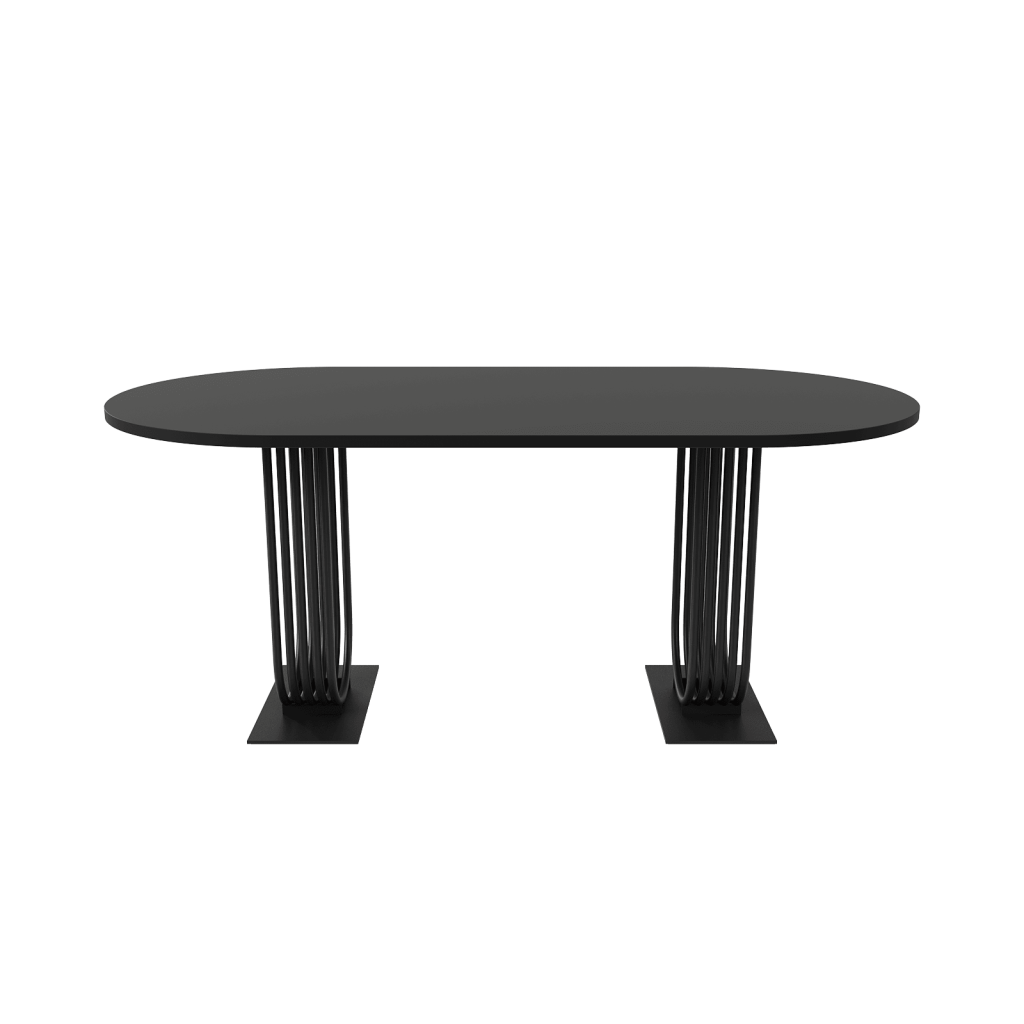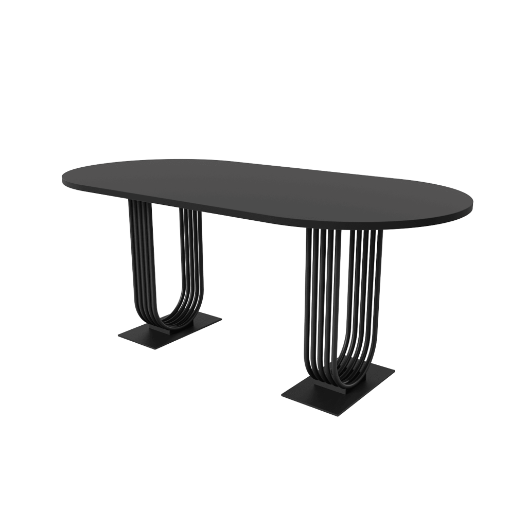 Лаконичный внешний вид овального стола серии ARFEO Duo, основанный на строгих прямых линиях, обеспечивает универсальность, позволяя органично вписаться в любой интерьер – от уютной домашней кухни до современного офисного пространства. Столешница, изготовленная из высококачественного ЛДСП толщиной 2.5 см, отличается не только прочностью и долговечностью, но и приятной на ощупь текстурой. Основа стола – прочный металлический каркас, выполненный из трубы диаметром 2 см. Такая конструкция гарантирует не только впечатляющую несущую способность, позволяющую комфортно разместить за столом от 4 до 6 человек, но и неповторимый индустриальный шарм. Обработка металла – это высококачественная матовая порошковая покраска, доступная в трех классических цветах: золотом, черном и белом. Порошковое покрытие не только обеспечивает привлекательный внешний вид, но и защищает металл от коррозии и механических повреждений, гарантируя долгий срок службы изделия.