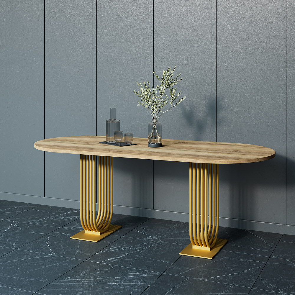 Лаконичный внешний вид овального стола серии ARFEO Duo, основанный на строгих прямых линиях, обеспечивает универсальность, позволяя органично вписаться в любой интерьер – от уютной домашней кухни до современного офисного пространства. Столешница, изготовленная из высококачественного ЛДСП толщиной 2.5 см, отличается не только прочностью и долговечностью, но и приятной на ощупь текстурой. Основа стола – прочный металлический каркас, выполненный из трубы диаметром 2 см. Такая конструкция гарантирует не только впечатляющую несущую способность, позволяющую комфортно разместить за столом от 4 до 6 человек, но и неповторимый индустриальный шарм. Обработка металла – это высококачественная матовая порошковая покраска, доступная в трех классических цветах: золотом, черном и белом. Порошковое покрытие не только обеспечивает привлекательный внешний вид, но и защищает металл от коррозии и механических повреждений, гарантируя долгий срок службы изделия.