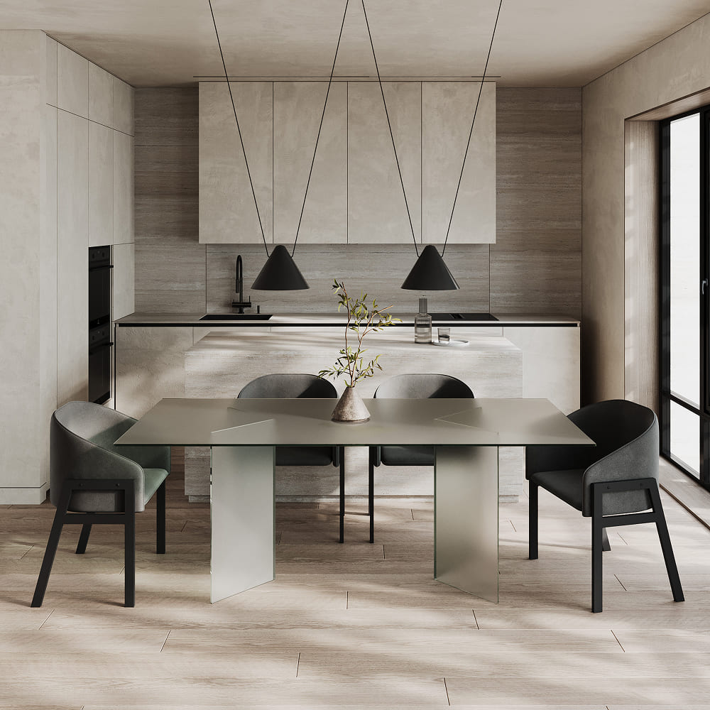Обеденный стол BAAKIS 200 х 90 см, матовое стекло