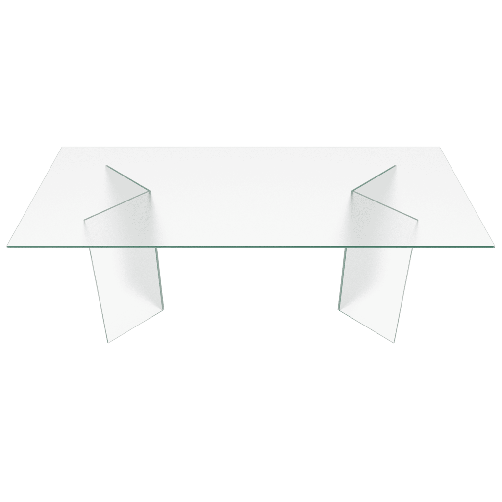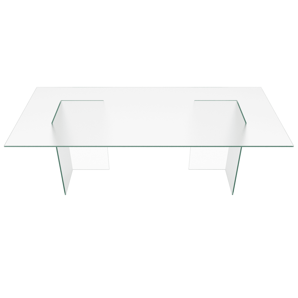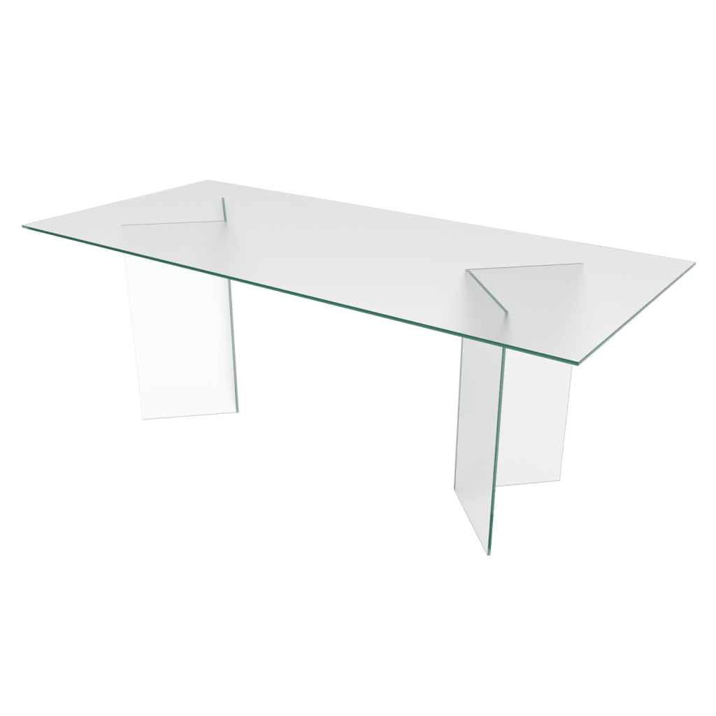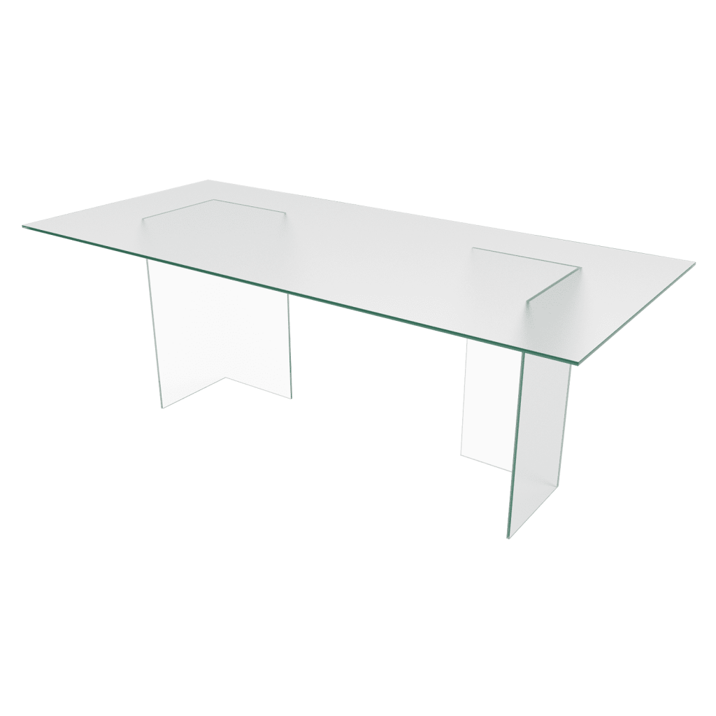 Дизайнерский цельностеклянный стол. Благодаря универсальному дизайну его можно использовать его как рабочий, так и обеденный стеклянный стол. На заказ возможно изготовить стол с уникальными параметрами.