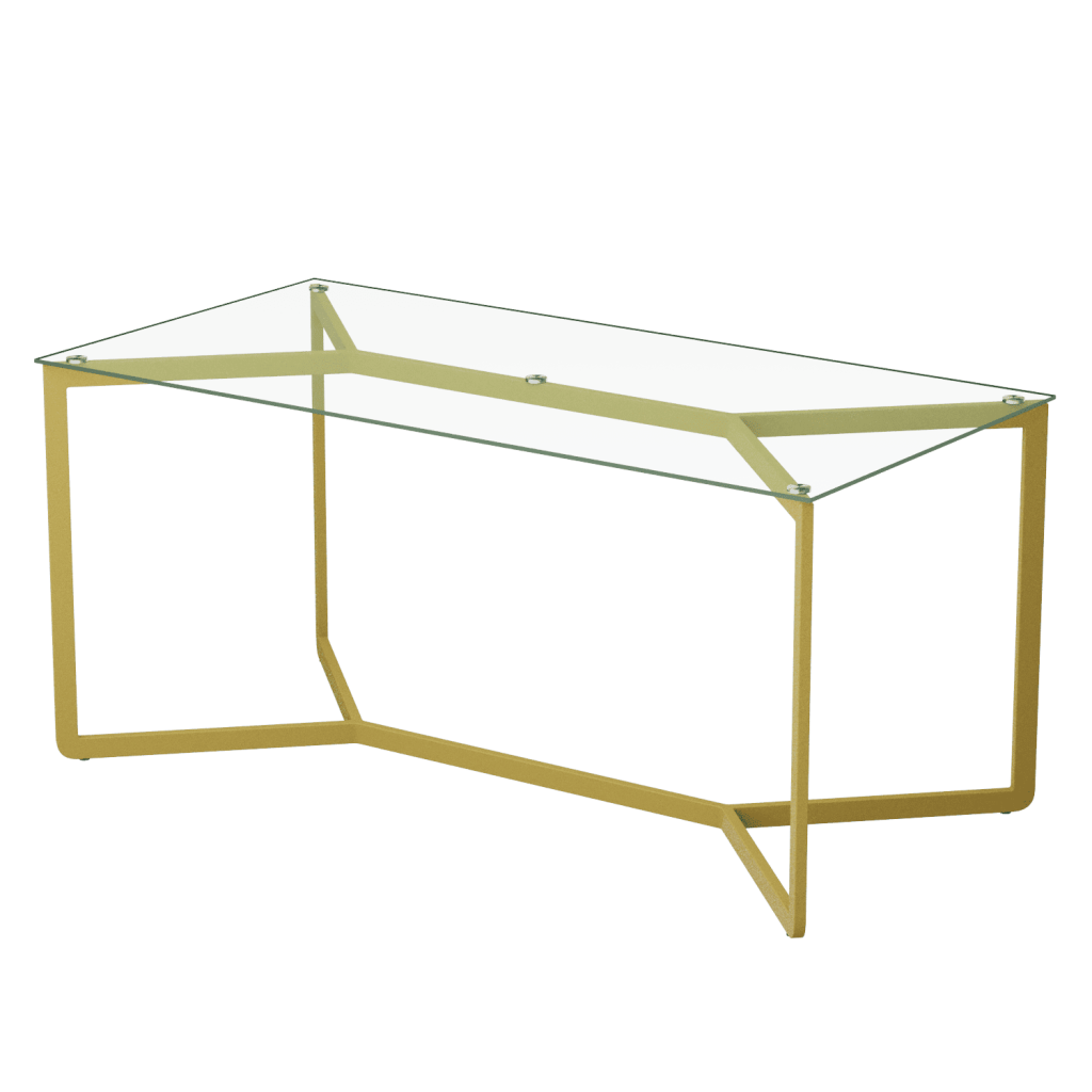 Прямоугольный кухонный стол, состоящий из прозрачного закаленного стекла толщиной 1 см и золотого металлического подстолья, не только прекрасно впишется в интерьер вашего дома, но и станет незаменимым элементом вашего обеденного пространства. Он прекрасно сочетается со стилем LOFT и однозначно будет притягивать взгляды окружающих.