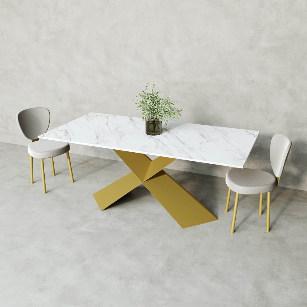 Обеденный стол LINBOW Wood 180 х 90 см, белый мрамор/золотой