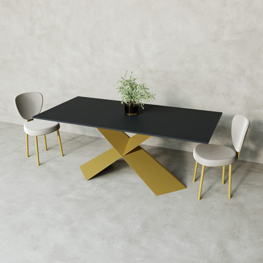 Обеденный стол LINBOW Wood 180 х 90 см, черный/золотой