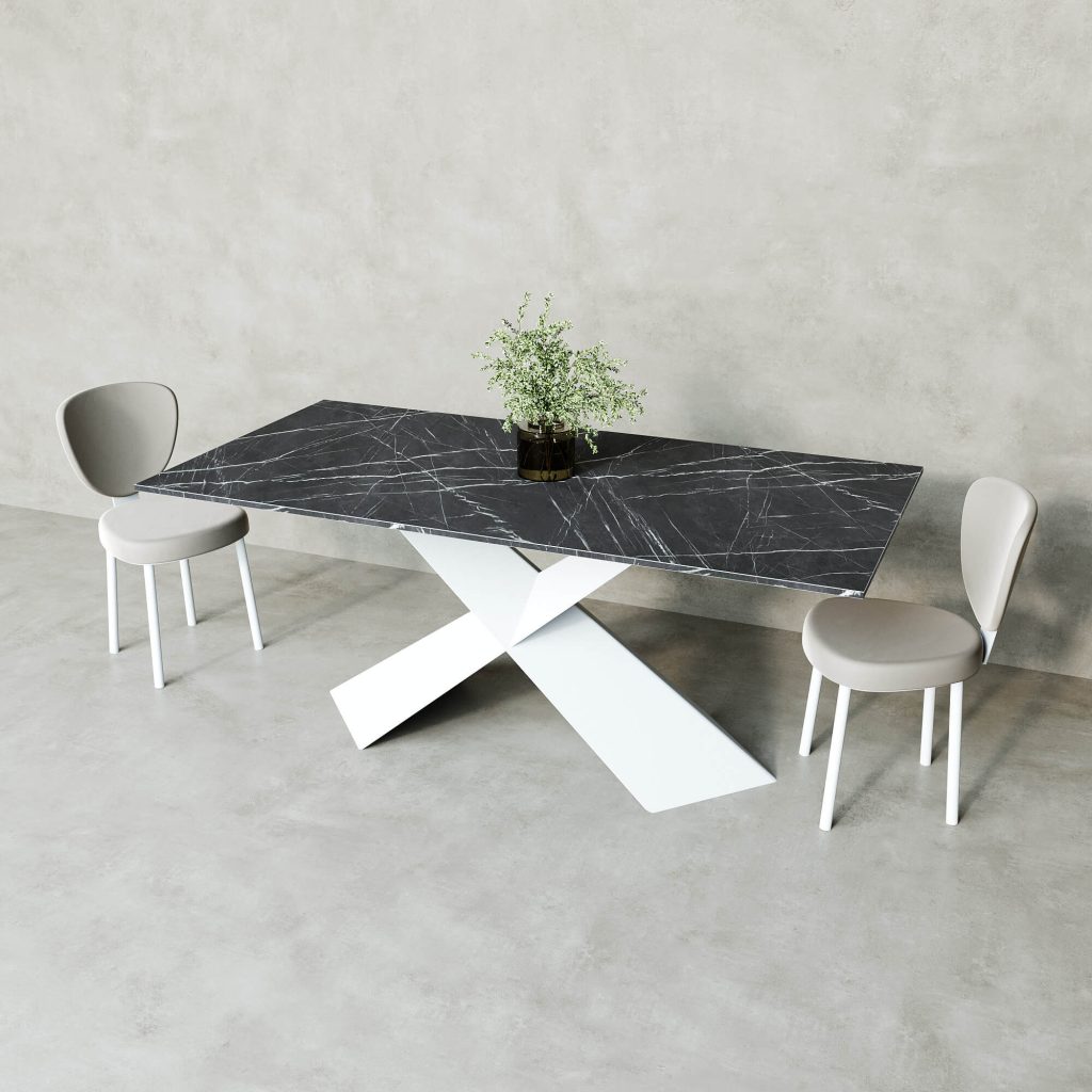 Обеденный стол LINBOW Wood 180 х 90 см, темный мрамор/белый