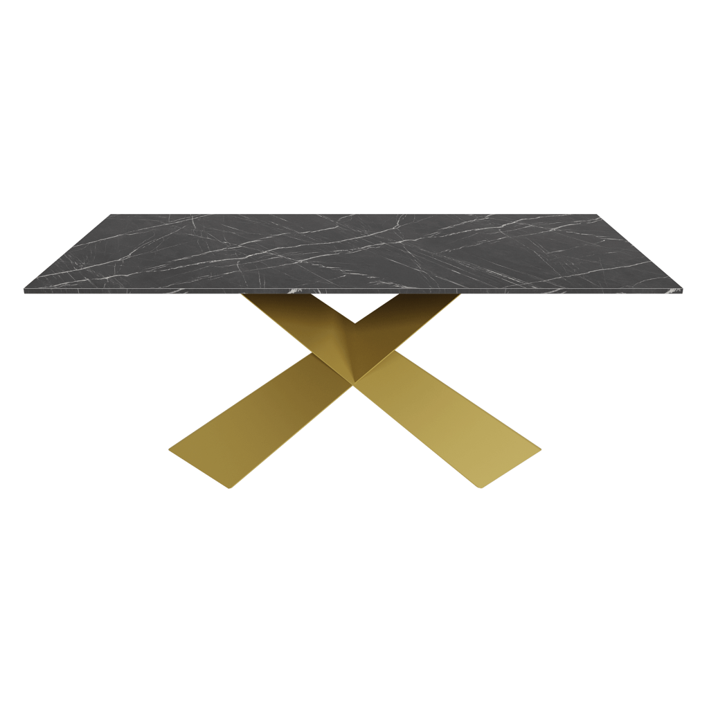Обеденный стол LINBOW Wood 180 х 90 см, темный мрамор/золотой
