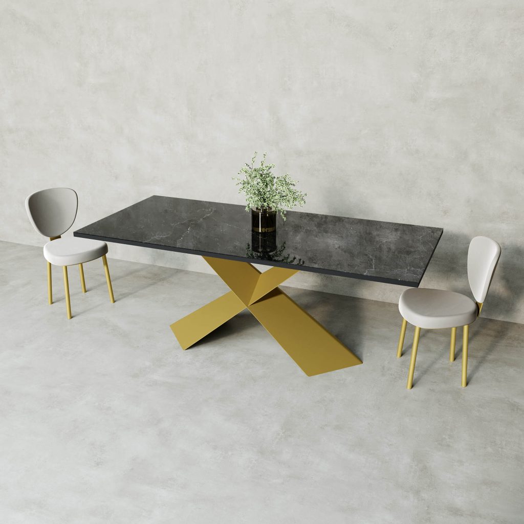 Обеденный стол LINBOW Wood + Glass 200 х 80 см, темный мрамор/золотой