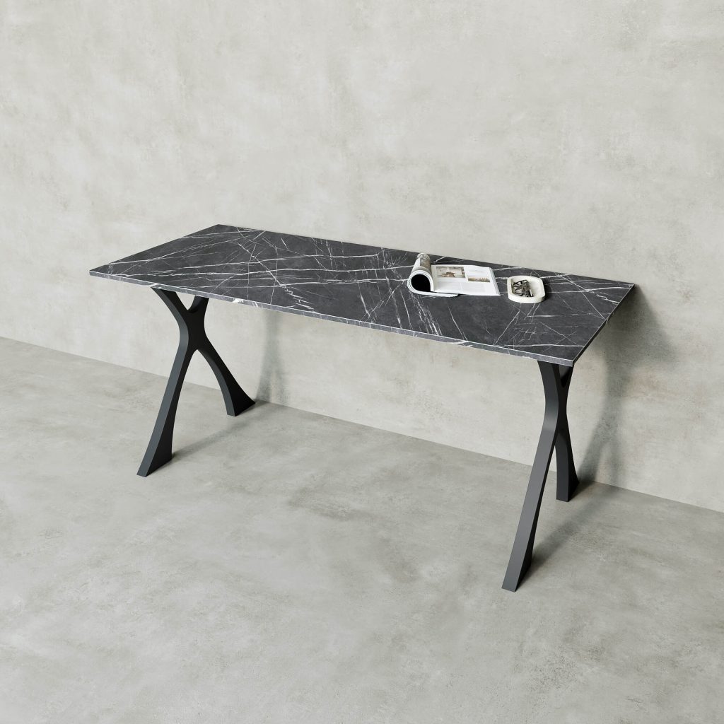 Обеденный стол TEYDOR 160 х 70 см, темный мрамор/черный