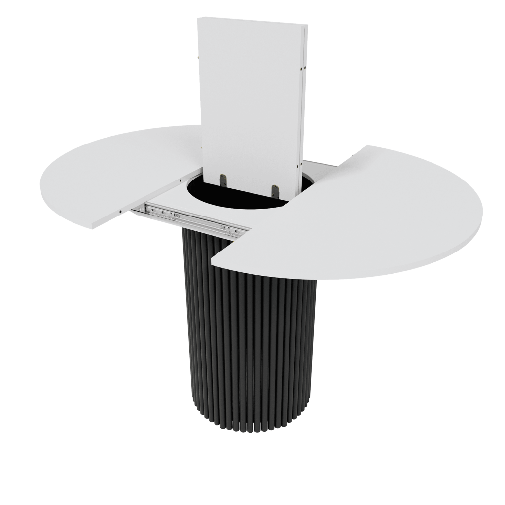 Стильный раздвижной стол TRUBIS R Max, отличающийся оригинальным металлическим подстольем из труб. Его круглая столешница из ЛДСП имеет толщину 1.6 см. Благодаря встроенной раздвижной системе, вы можете легко увеличить его размер с 90*90 см до 120*90 см.