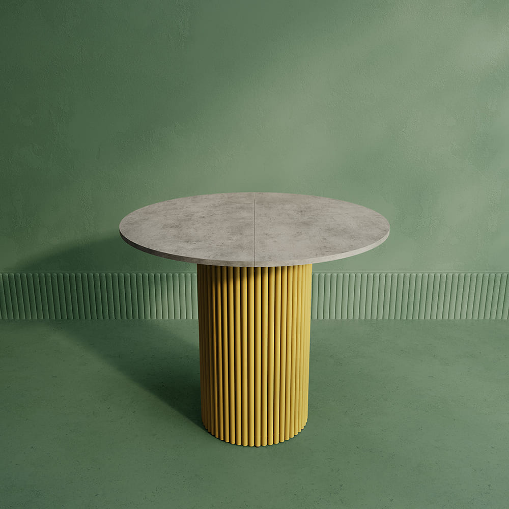 Обеденный стол TRUBIS L Max D90/120 х 90 см, бетон/золотой