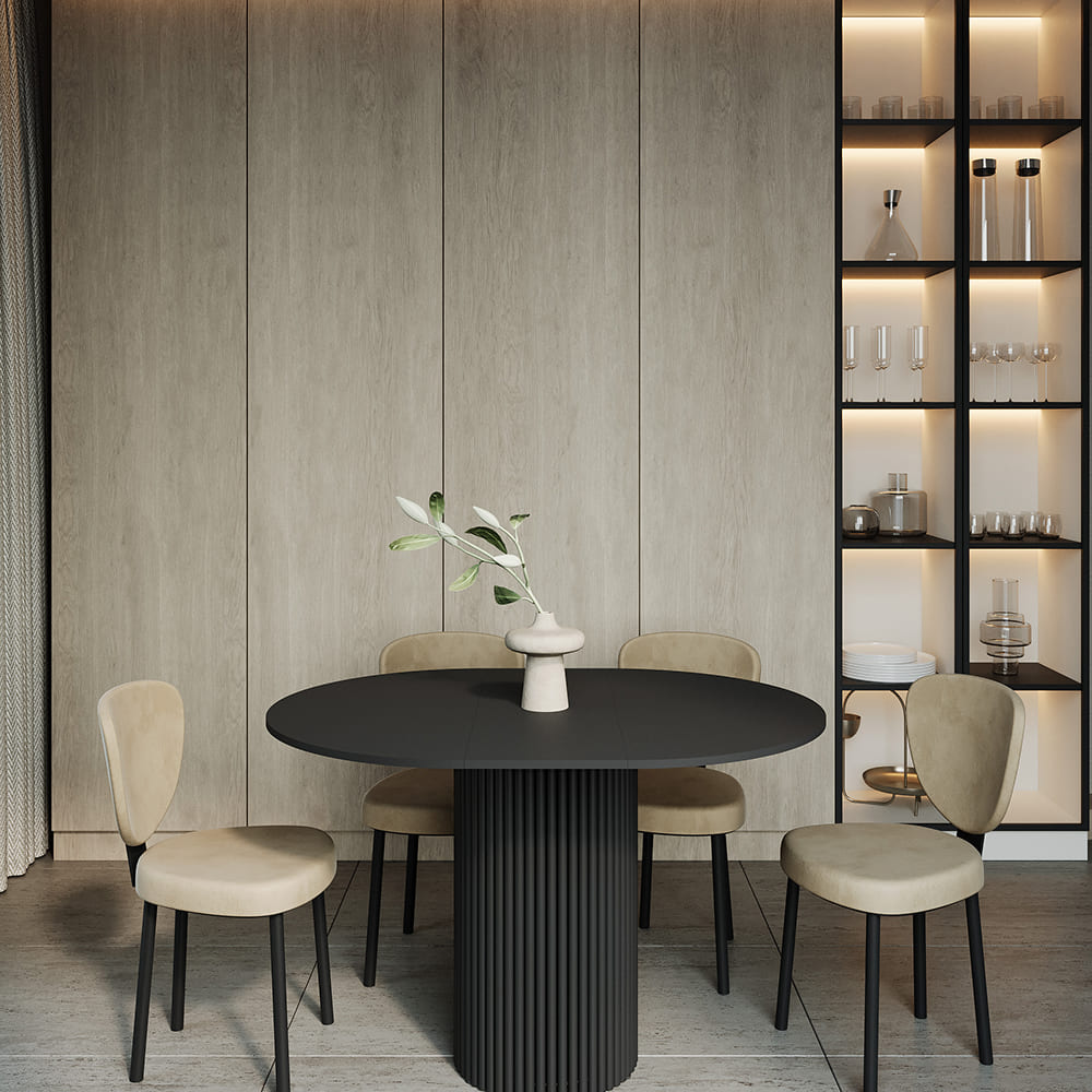 Обеденный стол TRUBIS L Max D90/120 х 90 см, черный