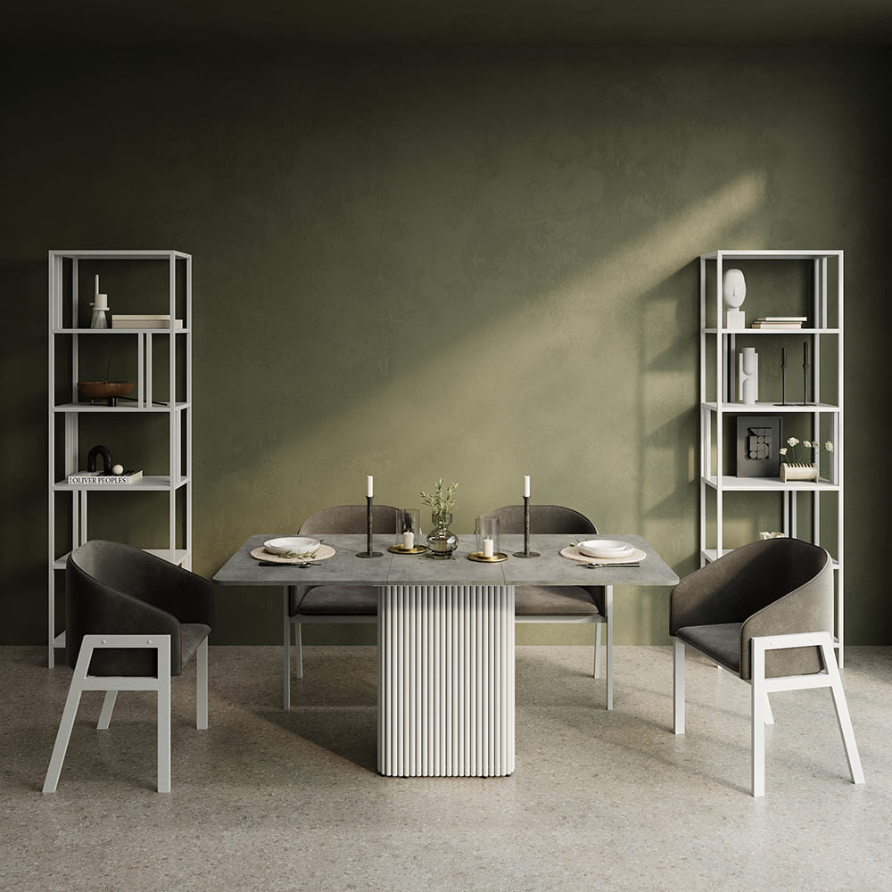 Обеденный стол TRUBIS R Max 120/160 х 80 см, бетон/белый