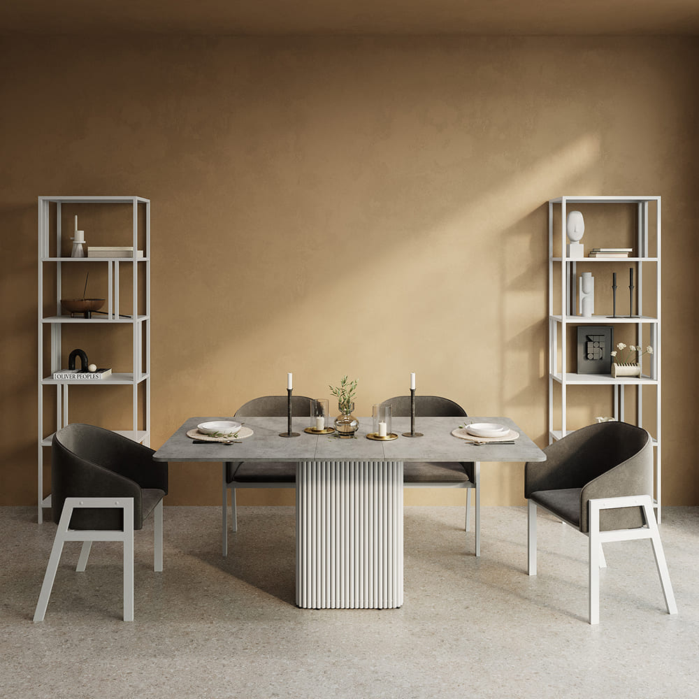Обеденный стол TRUBIS R Max 140/170 х 90 см, бетон/белый