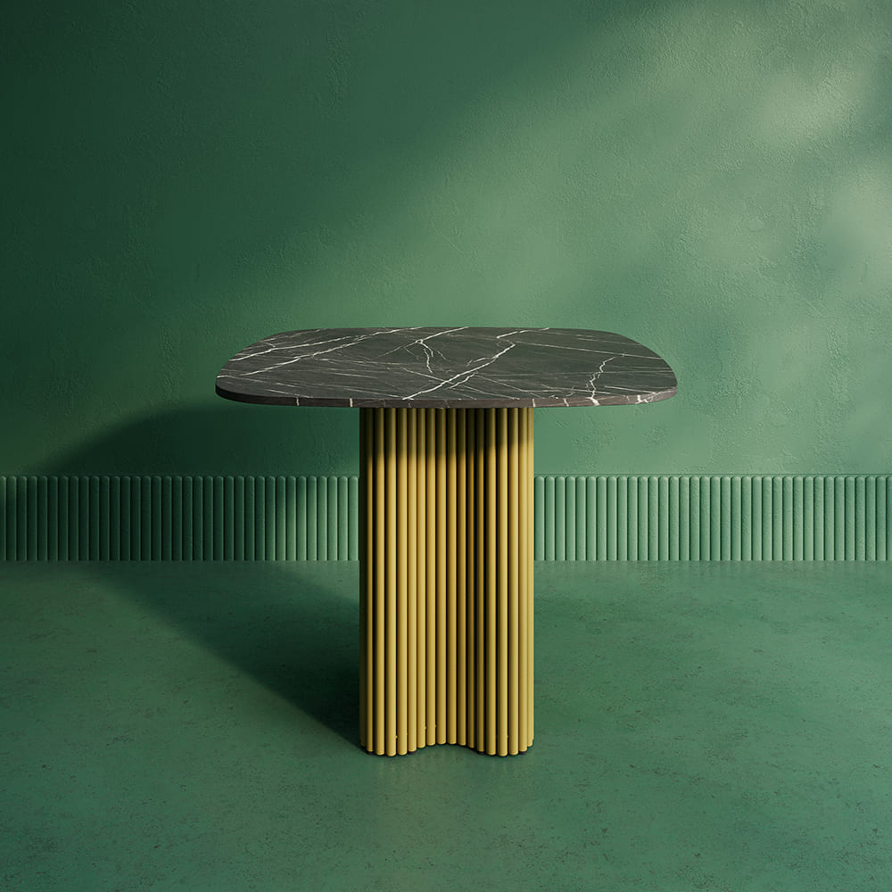 Обеденный стол TRUBIS Wood CLEVER 90 см, темный мрамор/золотой
