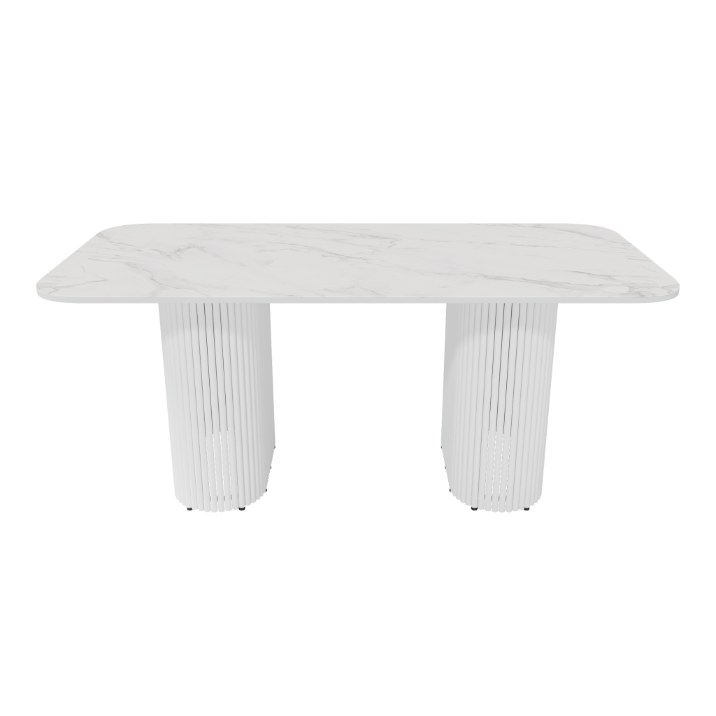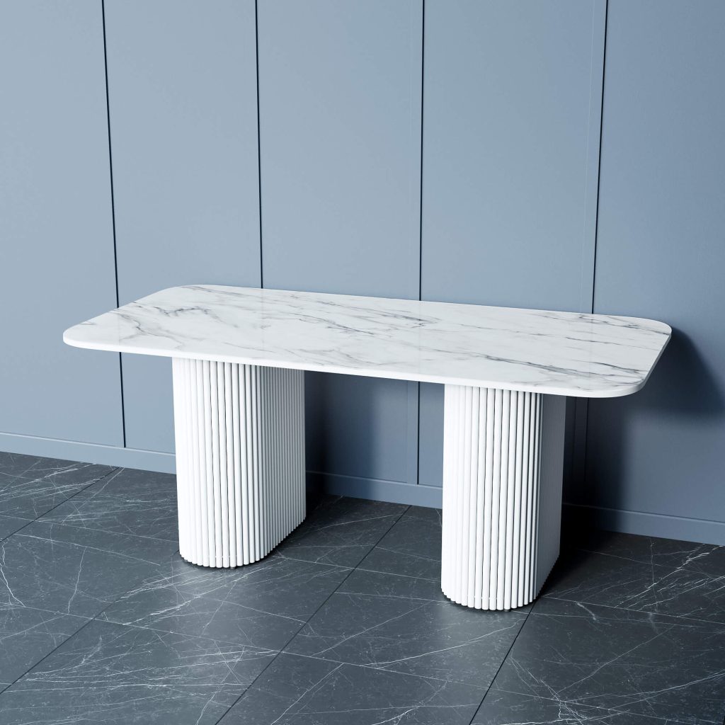 Обеденный стол TRUBIS Wood + Glass белый мрамор/белый, 180 х 90 см r150