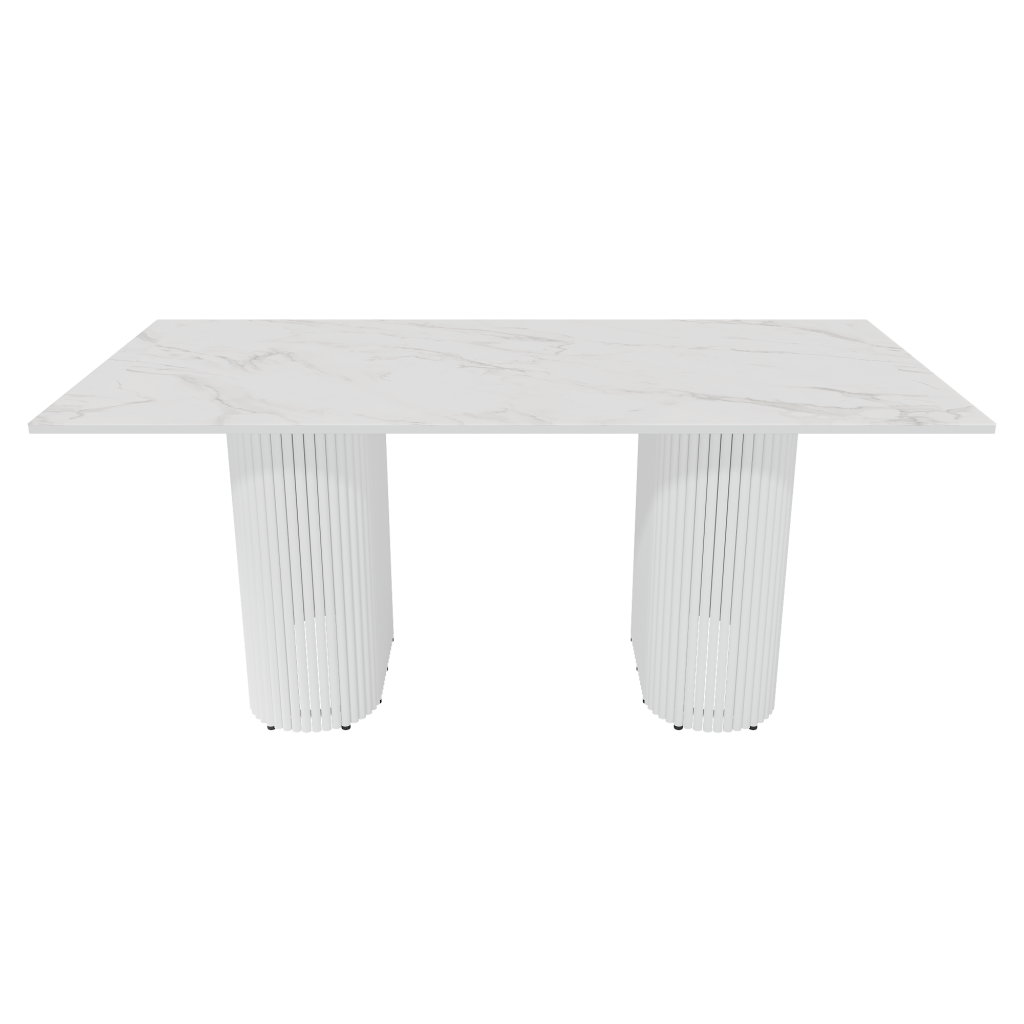 Обеденный стол TRUBIS Wood + Glass белый мрамор/белый, 180 х 90 см