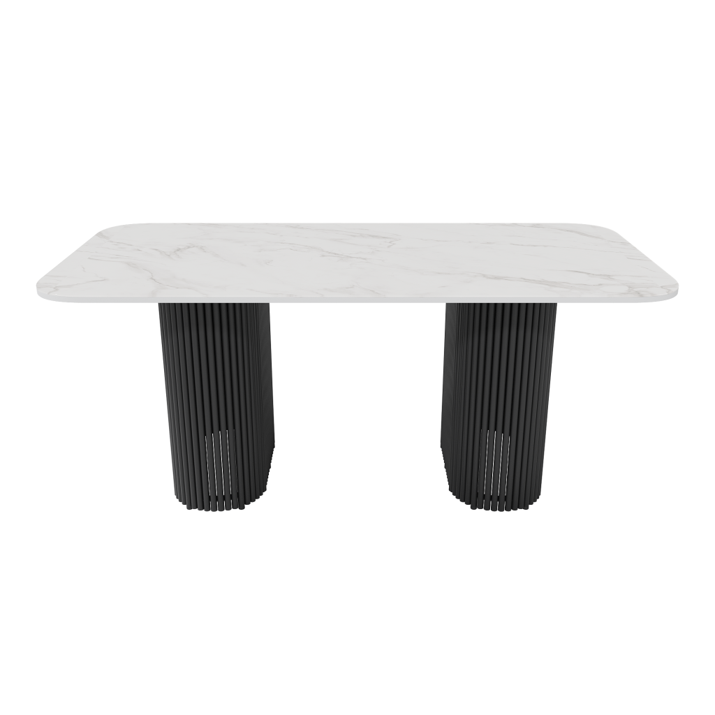 Обеденный стол TRUBIS Wood + Glass белый мрамор/черный, 180 х 90 см r150