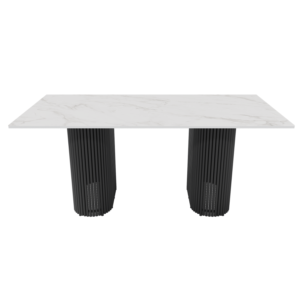 Обеденный стол TRUBIS Wood + Glass белый мрамор/черный, 180 х 90 см