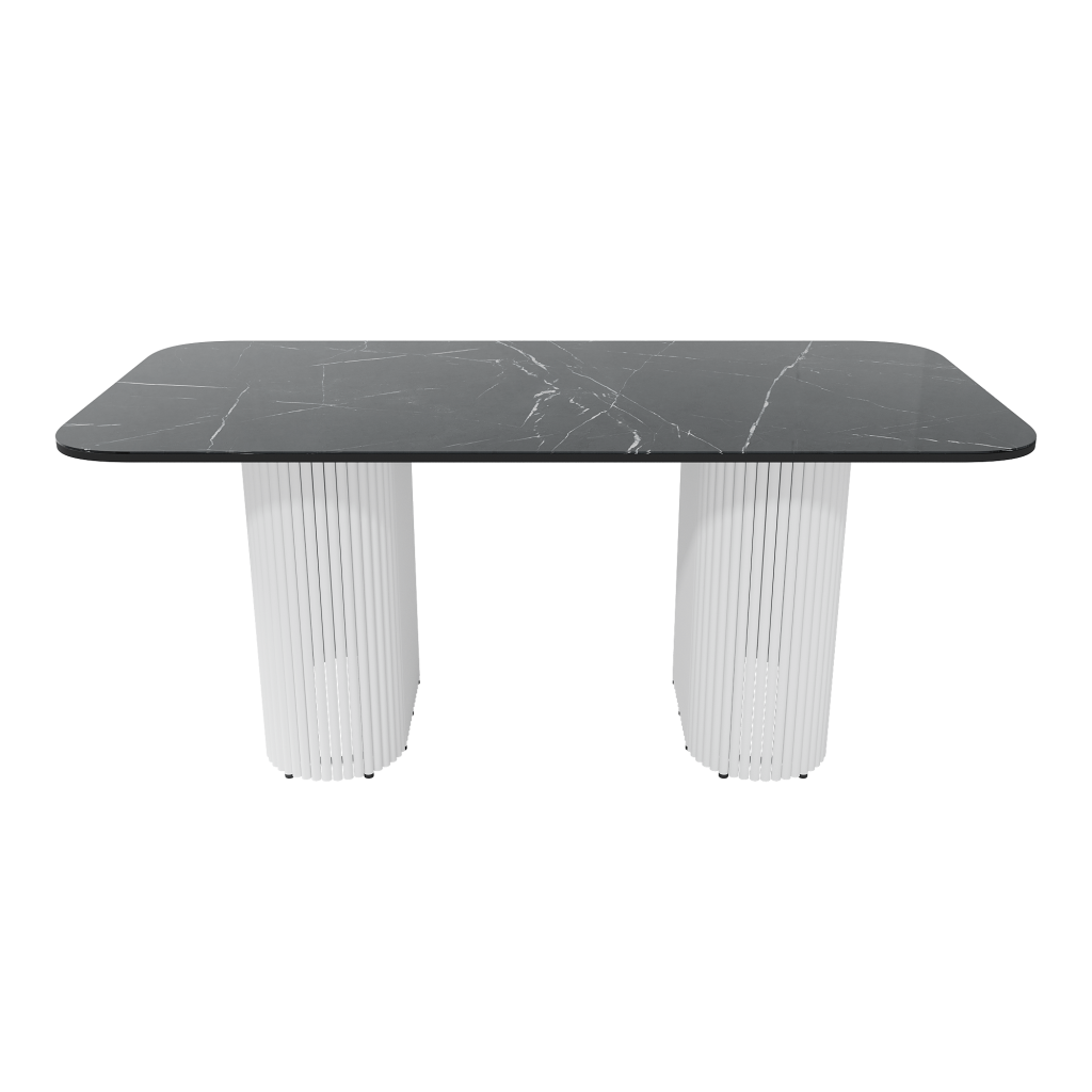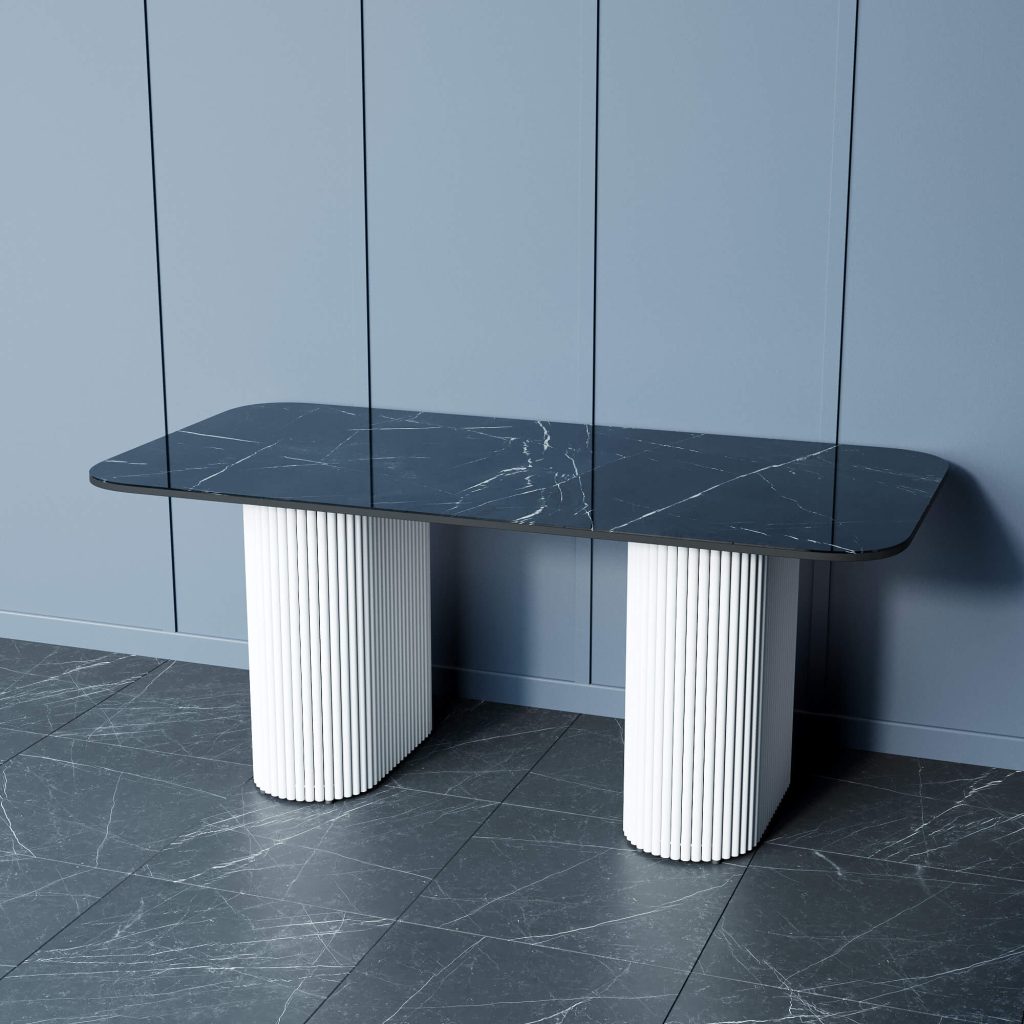 Обеденный стол TRUBIS Wood + Glass темный мрамор/белый, 180 х 90 см r150
