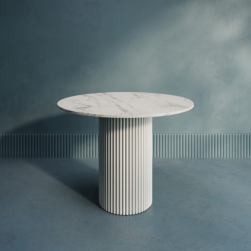 Обеденный стол TRUBIS Wood L D100 см, белый мрамор/белый