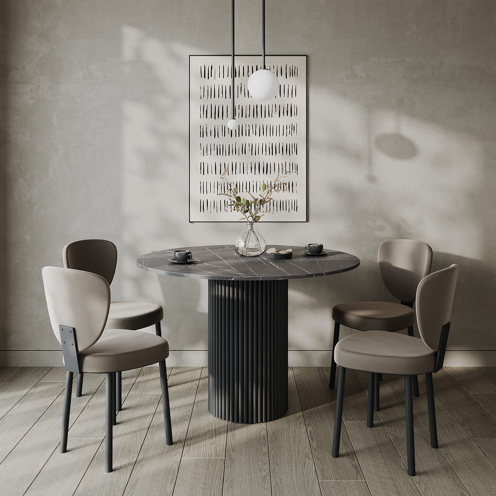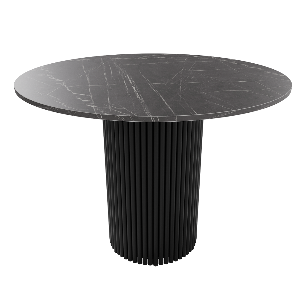 Обеденный стол TRUBIS Wood L D100 см, темный мрамор/черный