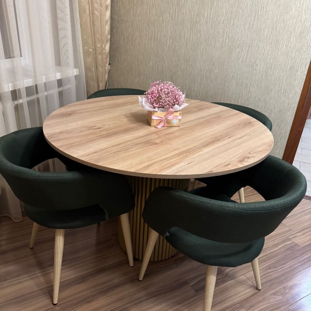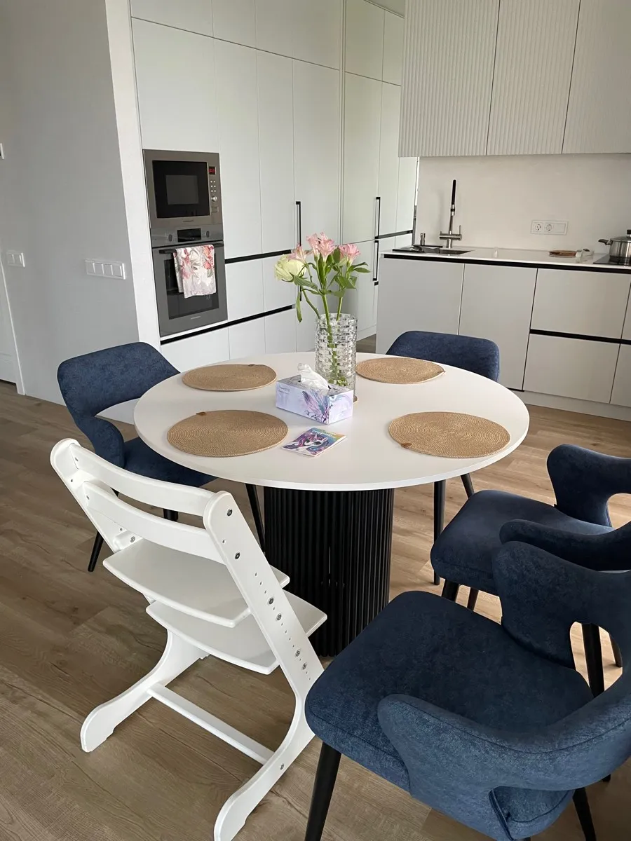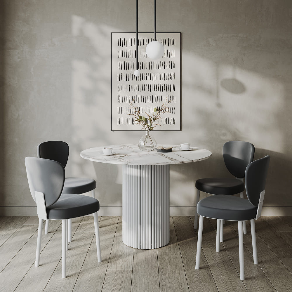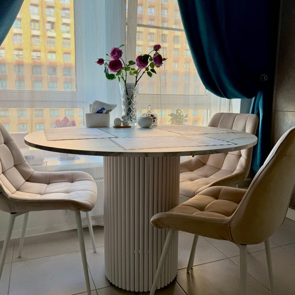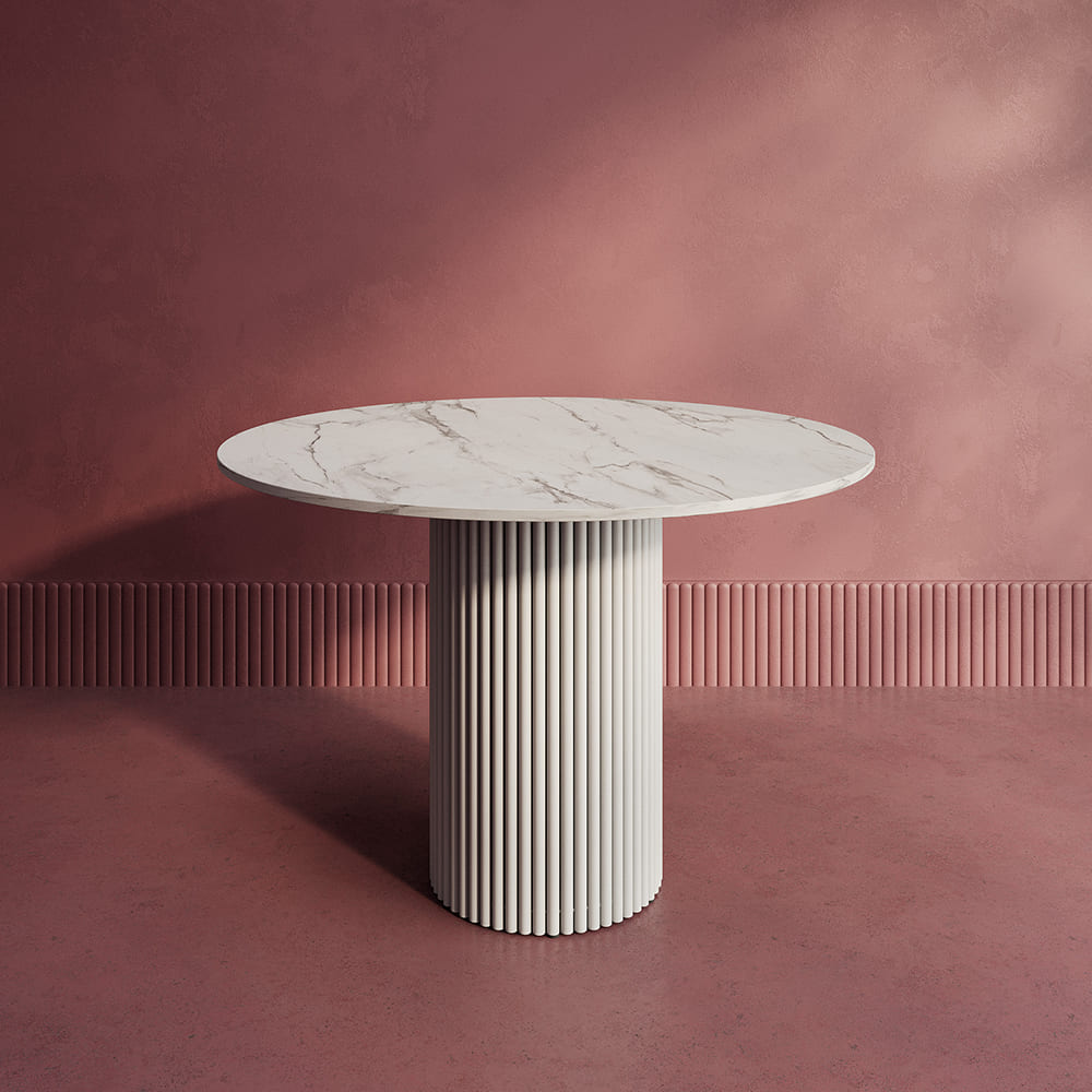 Обеденный стол TRUBIS Wood L D110 см, белый мрамор/белый