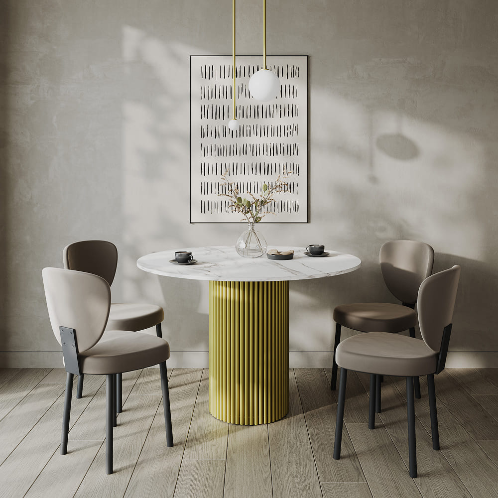 Обеденный стол TRUBIS Wood L D110 см, белый мрамор/золотой