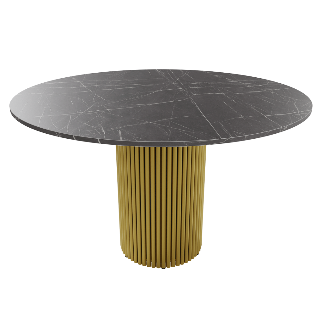 Обеденный стол TRUBIS Wood L D120 см, темный мрамор/золотой