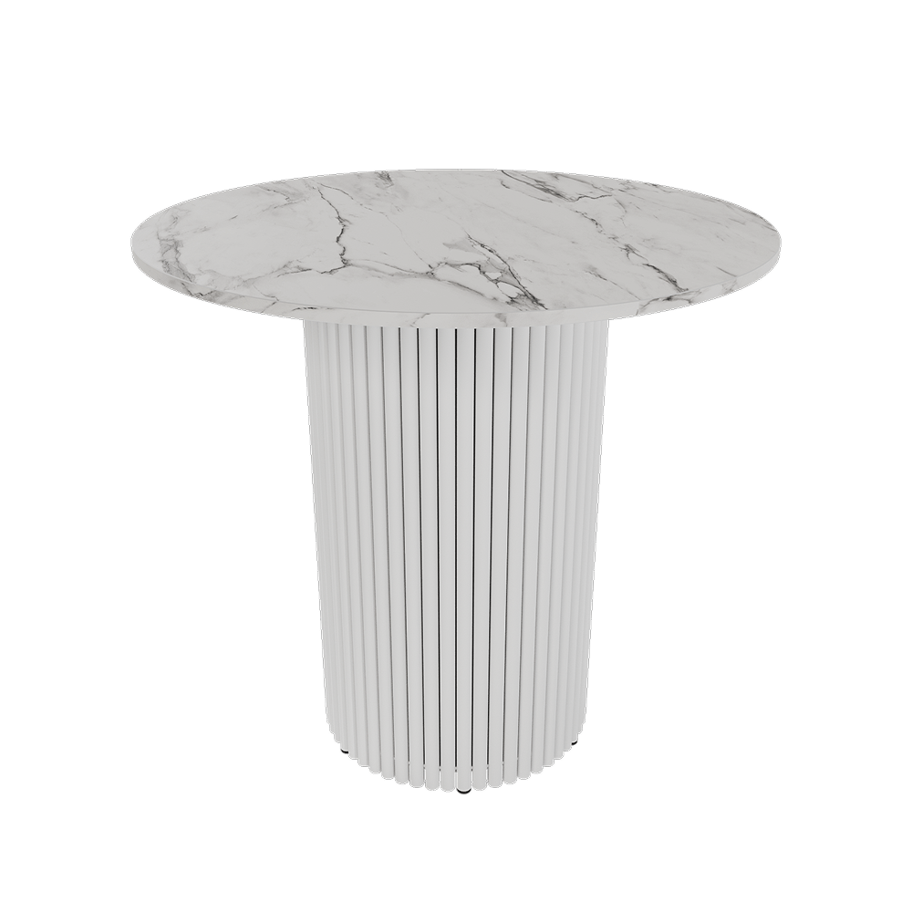 Обеденный стол TRUBIS Wood L D80 см, белый мрамор/белый