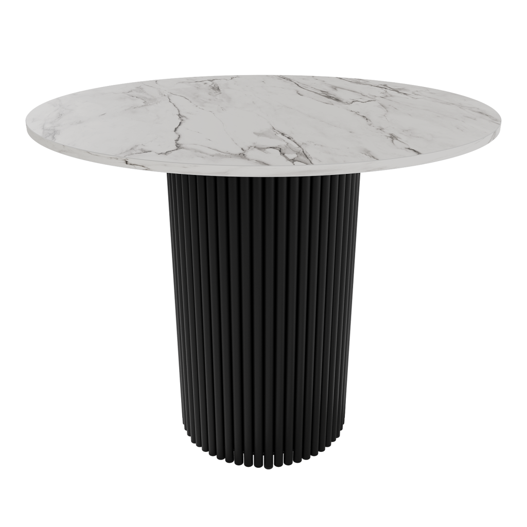 Обеденный стол TRUBIS Wood L D90 см, белый мрамор/черный