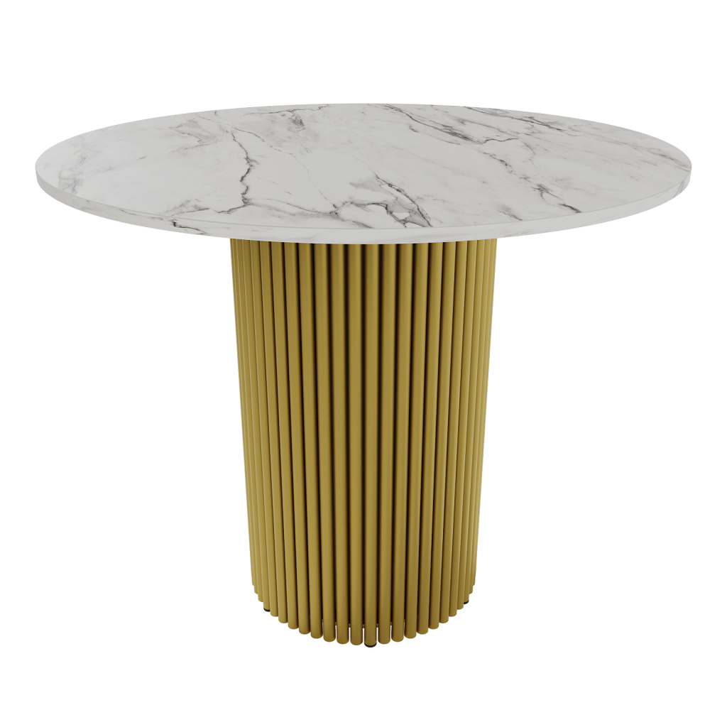 Обеденный стол TRUBIS Wood L D90 см, белый мрамор/золотой