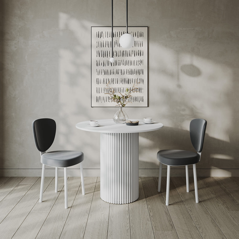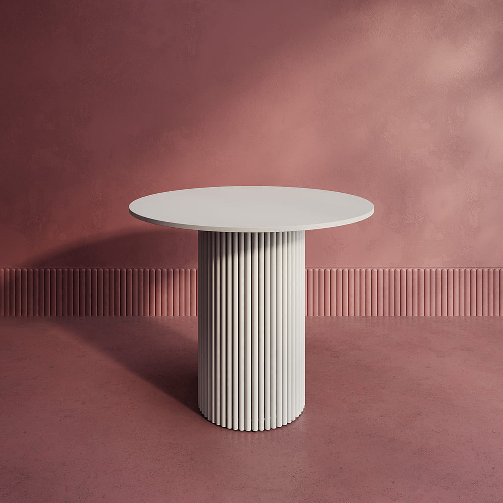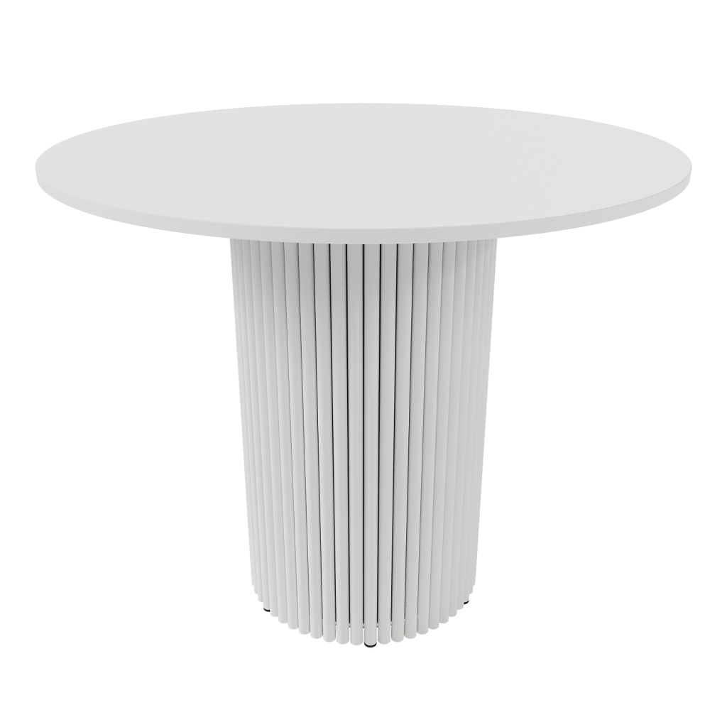 Дизайнерский стол в стиле минимализма станет гармоничным дополнением кухонного пространства. Круглый стол с реечным подстольем станет центром вашей кухни, идеальным местом для семейных ужинов и дружеских встреч. Столешница ЛДСП толщиной 1,6 см белого цвета. Стандартный вариант – матовая порошковая окраска в золотой, чёрный или белый цвет.