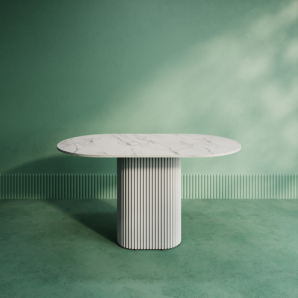 Обеденный стол TRUBIS Wood Oval 140 х 80 см, белый мрамор/белый