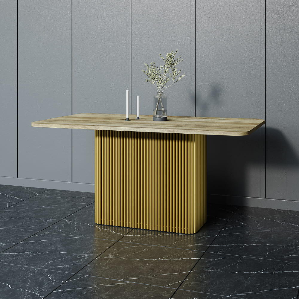 Обеденный стол TRUBIS Wood Rectangle 160 х 80 см, орех/золотой