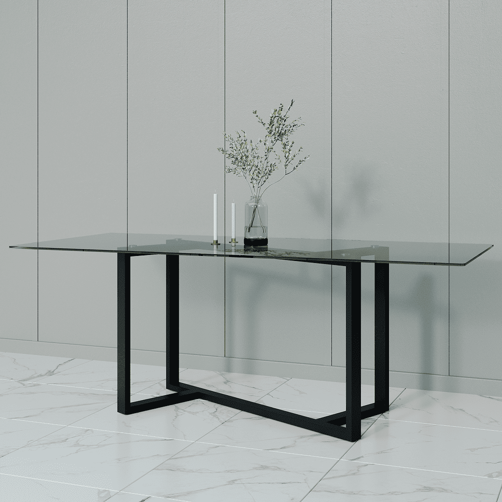 Обеденный стол VETLIX 200 х 90, осветленное стекло/черный
