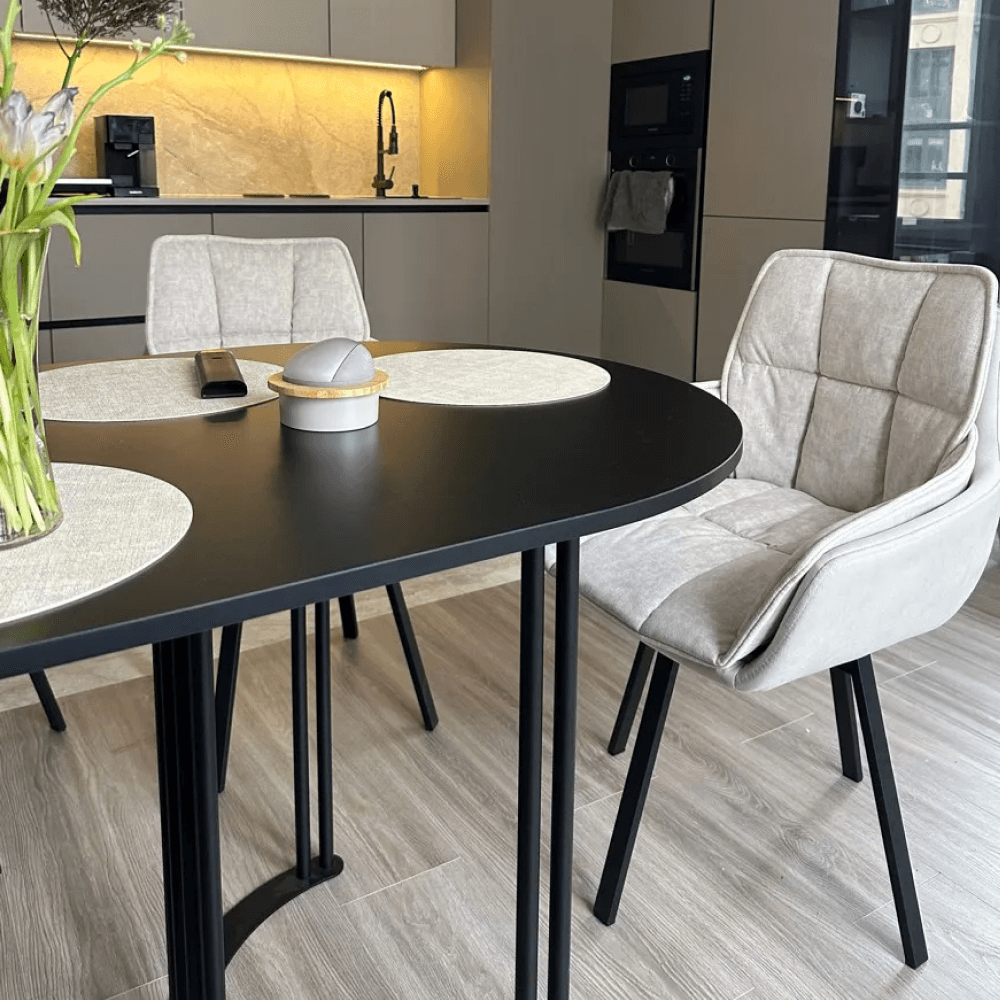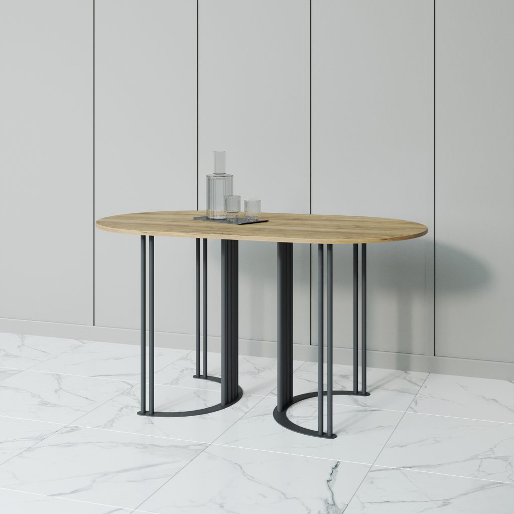 Овальный кухонный стол, состоящий из столешницы и металлического подстолья не только прекрасно впишется в интерьер вашего дома, но и станет незаменимым элементом вашего обеденного пространства. Он прекрасно сочетается со стилем LOFT и однозначно будет притягивать взгляды окружающих. Обеденный овальный стол придаёт кухне стильный и современный вид. Создает гармоничное пространство, располагая к уютным беседам и веселым застольям. Кухонный стол — это не просто предмет мебели, а место для теплых воспоминаний и общения с близкими.