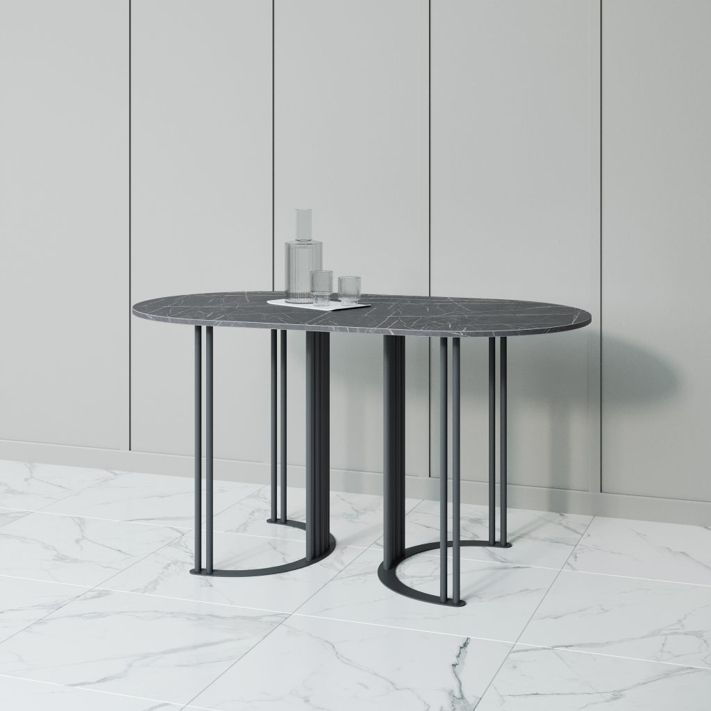 Обеденный стол VIOLUR 140 х 80 см, темный мрамор/черный