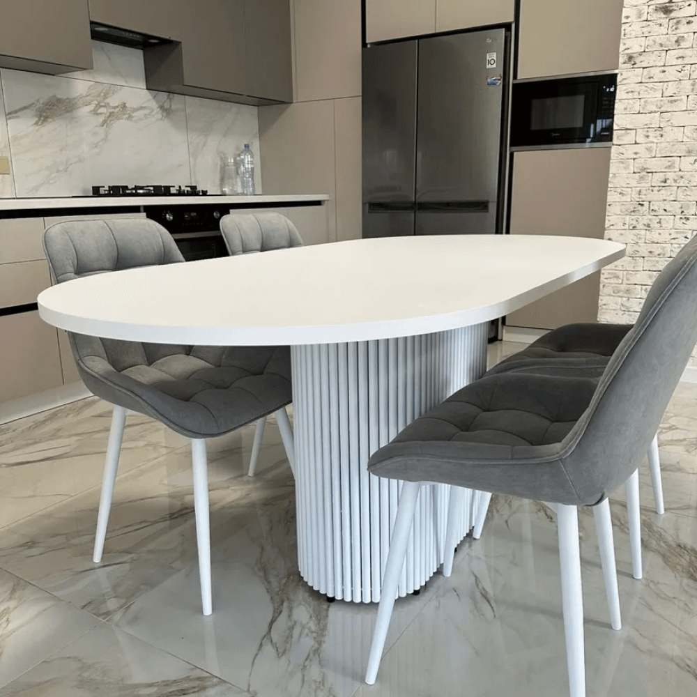 Овальный кухонный стол, состоящий из столешницы и металлического подстолья не только прекрасно впишется в интерьер вашего дома, но и станет незаменимым элементом вашего обеденного пространства. Он прекрасно сочетается со стилем LOFT и однозначно будет притягивать взгляды окружающих. Обеденный овальный стол придаёт кухне стильный и современный вид. Создает гармоничное пространство, располагая к уютным беседам и веселым застольям. Кухонный стол — это не просто предмет мебели, а место для теплых воспоминаний и общения с близкими.