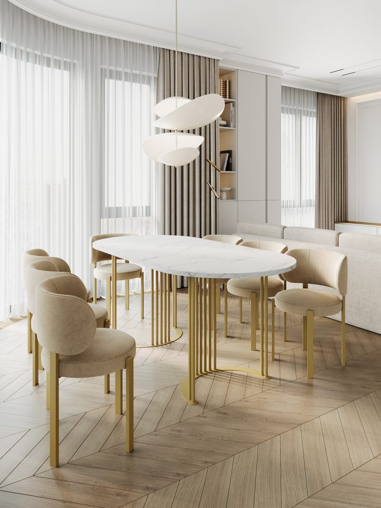 - Обеденный стол VIOLUR 200 х 90 см, белый мрамор/золотой