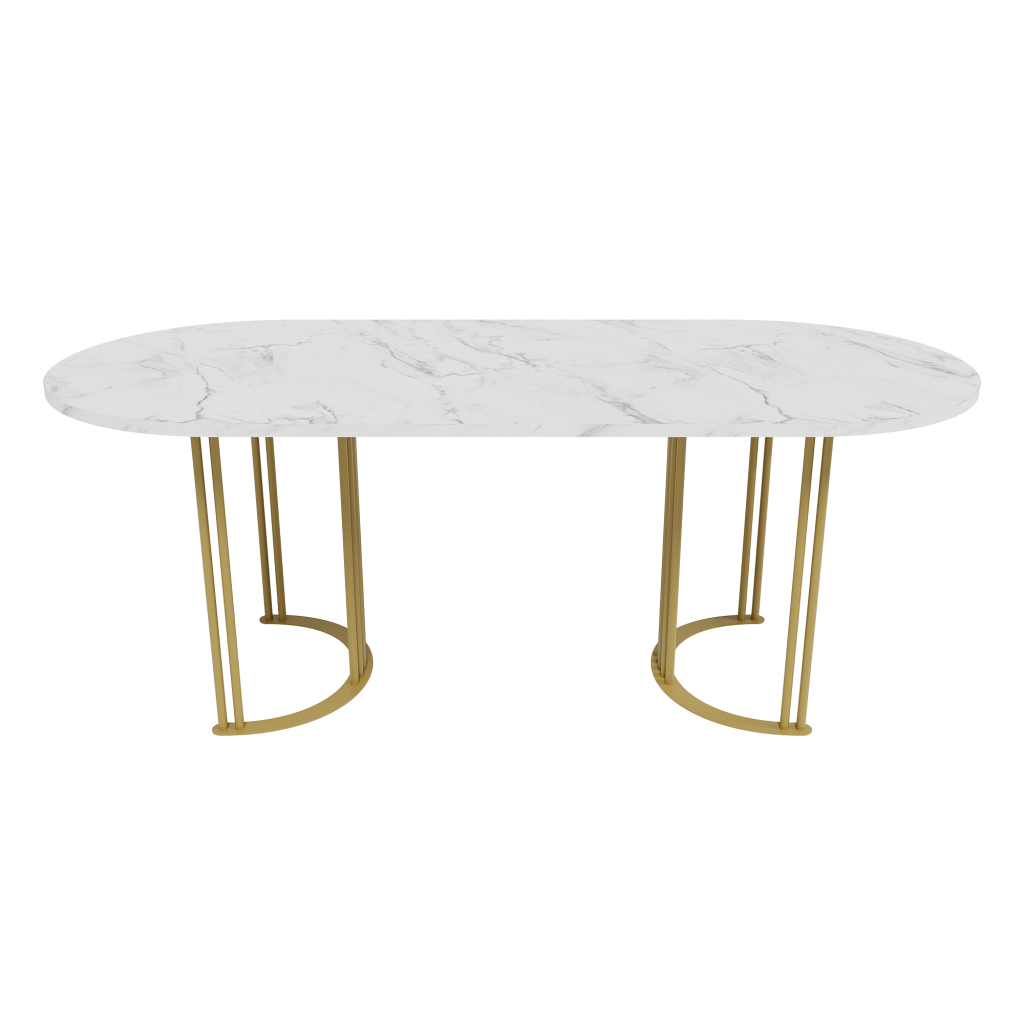 Обеденный стол VIOLUR 200 х 90 см, белый мрамор/золотой