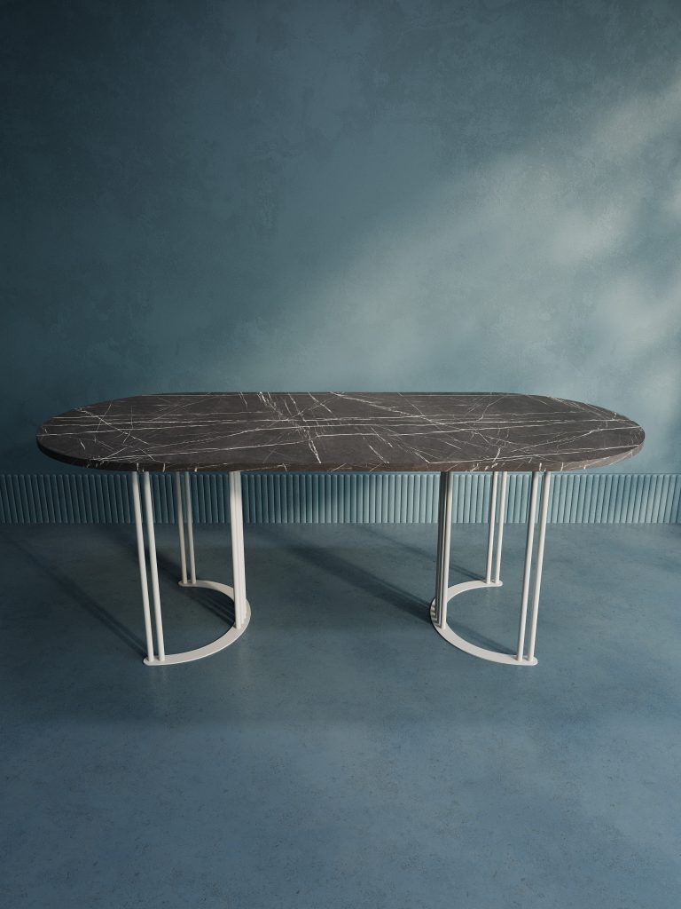 - Обеденный стол VIOLUR 200 х 90 см, темный мрамор/белый